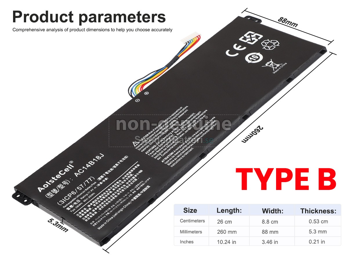 Det nya Acer Aspire 3 A315-41-R1PK ersättningsbatteri för laptop i originalkvalitet är gjort av ett nyimporterat Grad A + batteri, TI-chip från Texas och ABS + PC miljöskyddssmaterialsom klarar höga temperaturer och är slitageskyddat, och som har genomgått mer än 100 säkerhetstester. Alla våra Acer Aspire 3 A315-41-R1PK laptopersättningsbatterier är förenliga med CE, UL, ROHS, ISO9001/9002 certifieringsstandarder, dess design är i linje med OEM-specifikationer och 100% kompatibelt med originalspecifikationer. Prestandan är stabilare, väntetiden är längre, nya Acer Aspire 3 A315-41-R1PK ersättningsbatteri av originalkvalitet passar olika omständigheter, så du kan använda din laptop närsomhelst, och slipper oroa dig över batteriet!