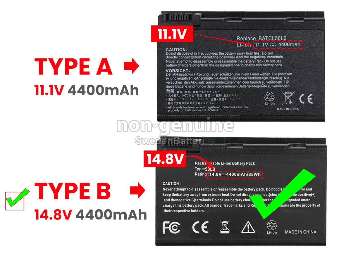 Det nya Acer Aspire 9102WLC ersättningsbatteri för laptop i originalkvalitet är gjort av ett nyimporterat Grad A + batteri, TI-chip från Texas och ABS + PC miljöskyddssmaterialsom klarar höga temperaturer och är slitageskyddat, och som har genomgått mer än 100 säkerhetstester. Alla våra Acer Aspire 9102WLC laptopersättningsbatterier är förenliga med CE, UL, ROHS, ISO9001/9002 certifieringsstandarder, dess design är i linje med OEM-specifikationer och 100% kompatibelt med originalspecifikationer. Prestandan är stabilare, väntetiden är längre, nya Acer Aspire 9102WLC ersättningsbatteri av originalkvalitet passar olika omständigheter, så du kan använda din laptop närsomhelst, och slipper oroa dig över batteriet!