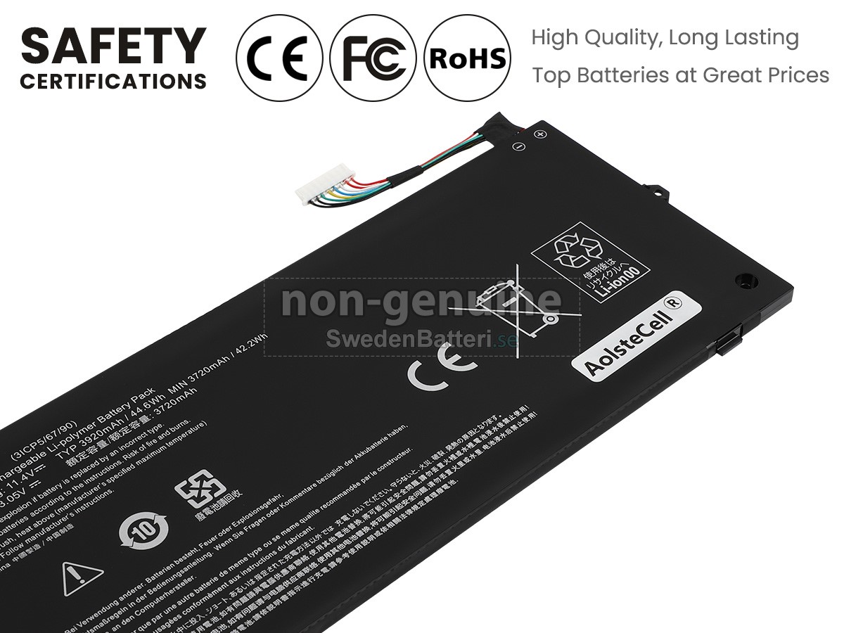 Det nya Acer Chromebook C733-C7W3 ersättningsbatteri för laptop i originalkvalitet är gjort av ett nyimporterat Grad A + batteri, TI-chip från Texas och ABS + PC miljöskyddssmaterialsom klarar höga temperaturer och är slitageskyddat, och som har genomgått mer än 100 säkerhetstester. Alla våra Acer Chromebook C733-C7W3 laptopersättningsbatterier är förenliga med CE, UL, ROHS, ISO9001/9002 certifieringsstandarder, dess design är i linje med OEM-specifikationer och 100% kompatibelt med originalspecifikationer. Prestandan är stabilare, väntetiden är längre, nya Acer Chromebook C733-C7W3 ersättningsbatteri av originalkvalitet passar olika omständigheter, så du kan använda din laptop närsomhelst, och slipper oroa dig över batteriet!