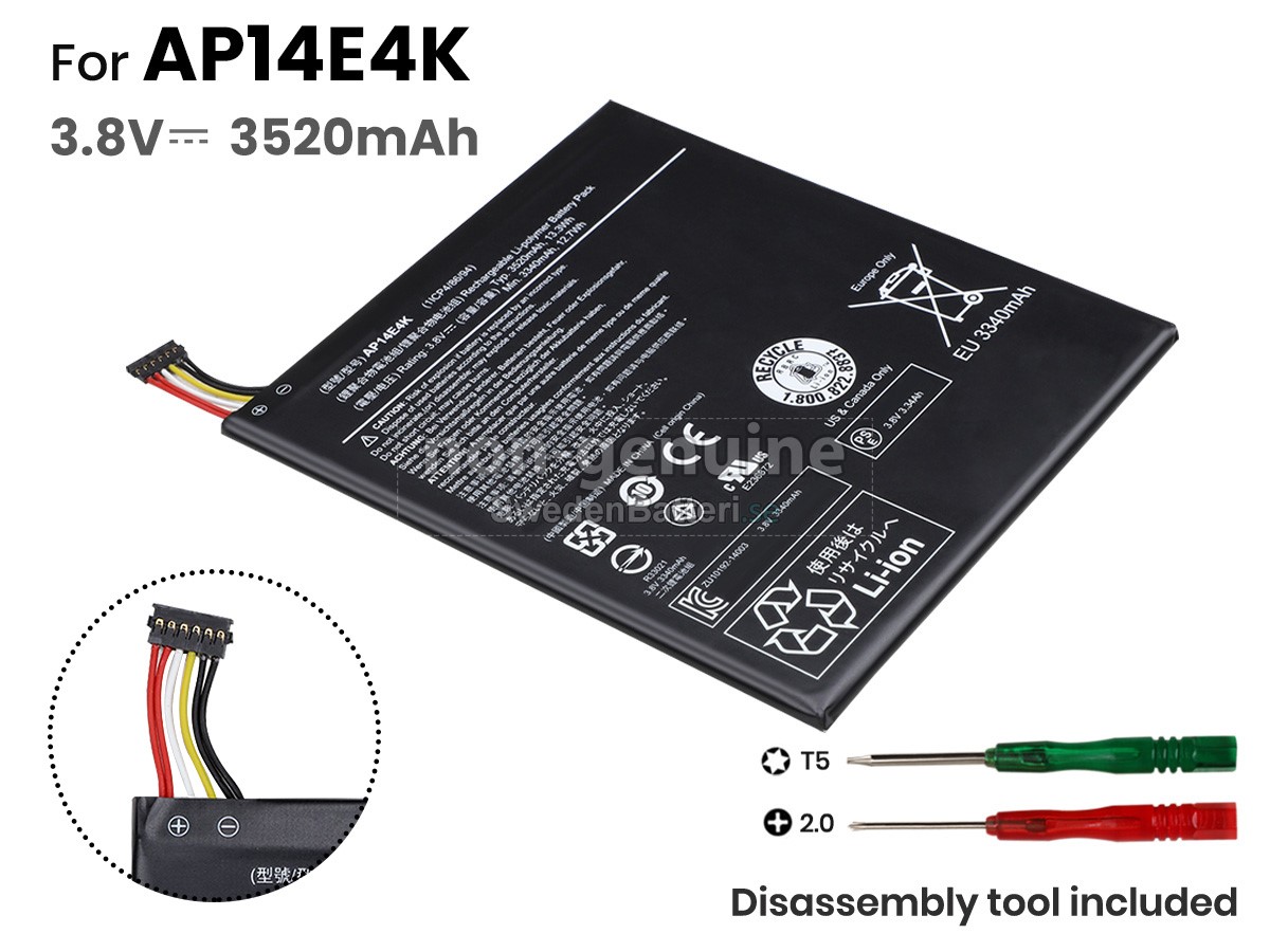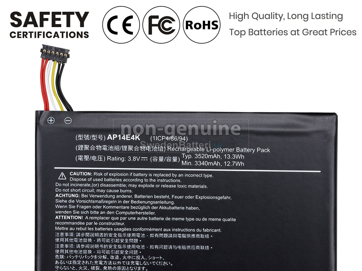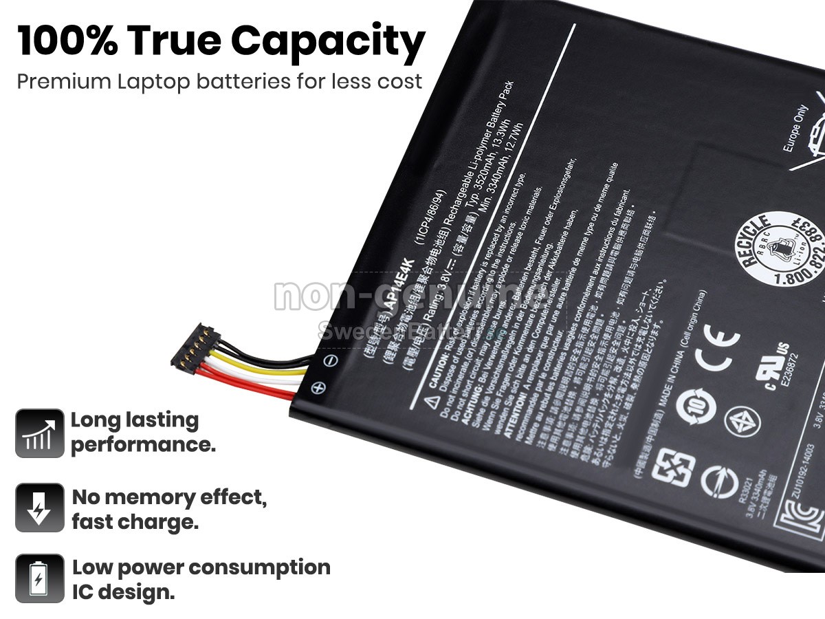 Det nya Acer Iconia One 7 B1-750 ersättningsbatteri för laptop i originalkvalitet är gjort av ett nyimporterat Grad A + batteri, TI-chip från Texas och ABS + PC miljöskyddssmaterialsom klarar höga temperaturer och är slitageskyddat, och som har genomgått mer än 100 säkerhetstester. Alla våra Acer Iconia One 7 B1-750 laptopersättningsbatterier är förenliga med CE, UL, ROHS, ISO9001/9002 certifieringsstandarder, dess design är i linje med OEM-specifikationer och 100% kompatibelt med originalspecifikationer. Prestandan är stabilare, väntetiden är längre, nya Acer Iconia One 7 B1-750 ersättningsbatteri av originalkvalitet passar olika omständigheter, så du kan använda din laptop närsomhelst, och slipper oroa dig över batteriet!