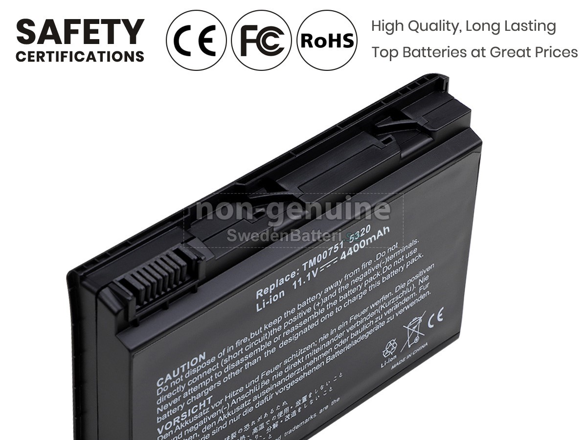 Som en professionellt batteriföretag i Sverige, är vi hängivna till att erbjuda dig högkalitativa laptopbatterier, är strikta mot oss själva, tar större ansvar för dig, och har en riktig "kärna" som berör dig. Vi säljer inte bara batterier, utan även tjänster och tillit! Vi erbjuder en ettårig fri ersättning och 30-dagars pengarna tillbaka-garanti. Splitternya Acer TM00751 -batteriet av originalkvalitet och bra "kärn"-quality, dubbel försäkran.