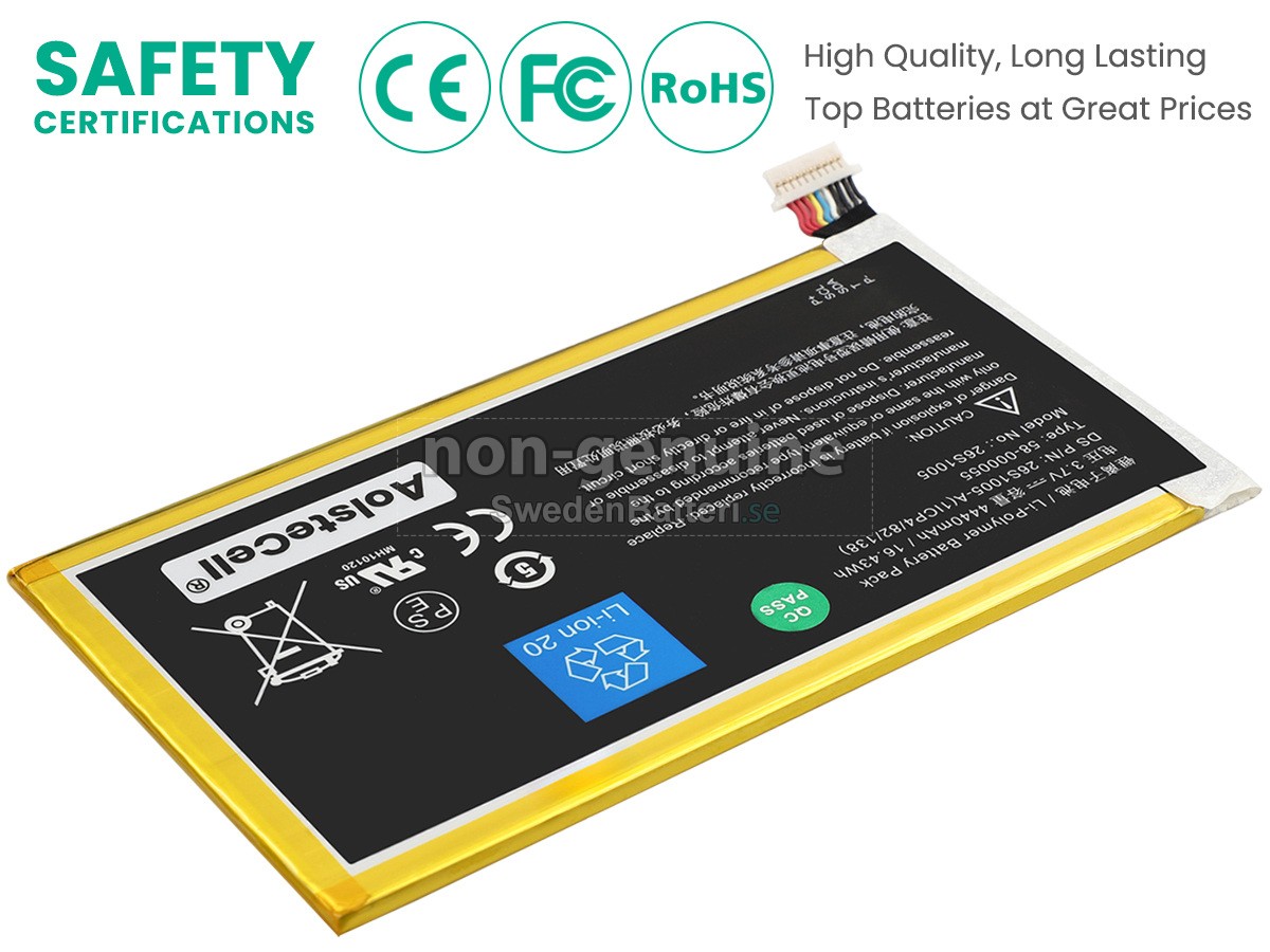 Det nya Amazon KINDLE FIRE HD 3RD ersättningsbatteri för laptop i originalkvalitet är gjort av ett nyimporterat Grad A + batteri, TI-chip från Texas och ABS + PC miljöskyddssmaterialsom klarar höga temperaturer och är slitageskyddat, och som har genomgått mer än 100 säkerhetstester. Alla våra Amazon KINDLE FIRE HD 3RD laptopersättningsbatterier är förenliga med CE, UL, ROHS, ISO9001/9002 certifieringsstandarder, dess design är i linje med OEM-specifikationer och 100% kompatibelt med originalspecifikationer. Prestandan är stabilare, väntetiden är längre, nya Amazon KINDLE FIRE HD 3RD ersättningsbatteri av originalkvalitet passar olika omständigheter, så du kan använda din laptop närsomhelst, och slipper oroa dig över batteriet!