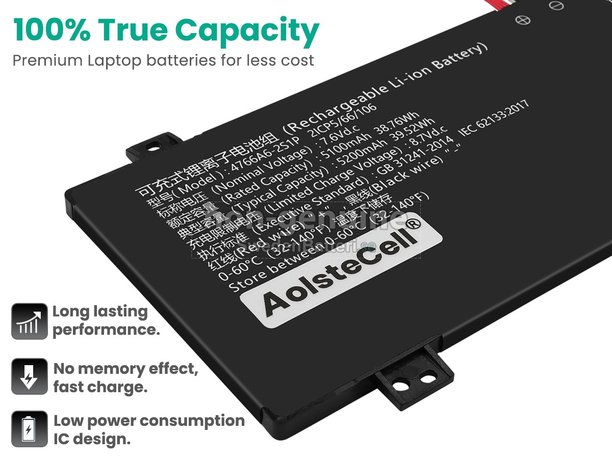 Det nya AolsteCell 4766A6-2S1P ersättningsbatteri för laptop i originalkvalitet är gjort av ett nyimporterat Grad A + batteri, TI-chip från Texas och ABS + PC miljöskyddssmaterialsom klarar höga temperaturer och är slitageskyddat, och som har genomgått mer än 100 säkerhetstester. Alla våra AolsteCell 4766A6-2S1P laptopersättningsbatterier är förenliga med CE, UL, ROHS, ISO9001/9002 certifieringsstandarder, dess design är i linje med OEM-specifikationer och 100% kompatibelt med originalspecifikationer. Prestandan är stabilare, väntetiden är längre, nya AolsteCell 4766A6-2S1P ersättningsbatteri av originalkvalitet passar olika omständigheter, så du kan använda din laptop närsomhelst, och slipper oroa dig över batteriet!
