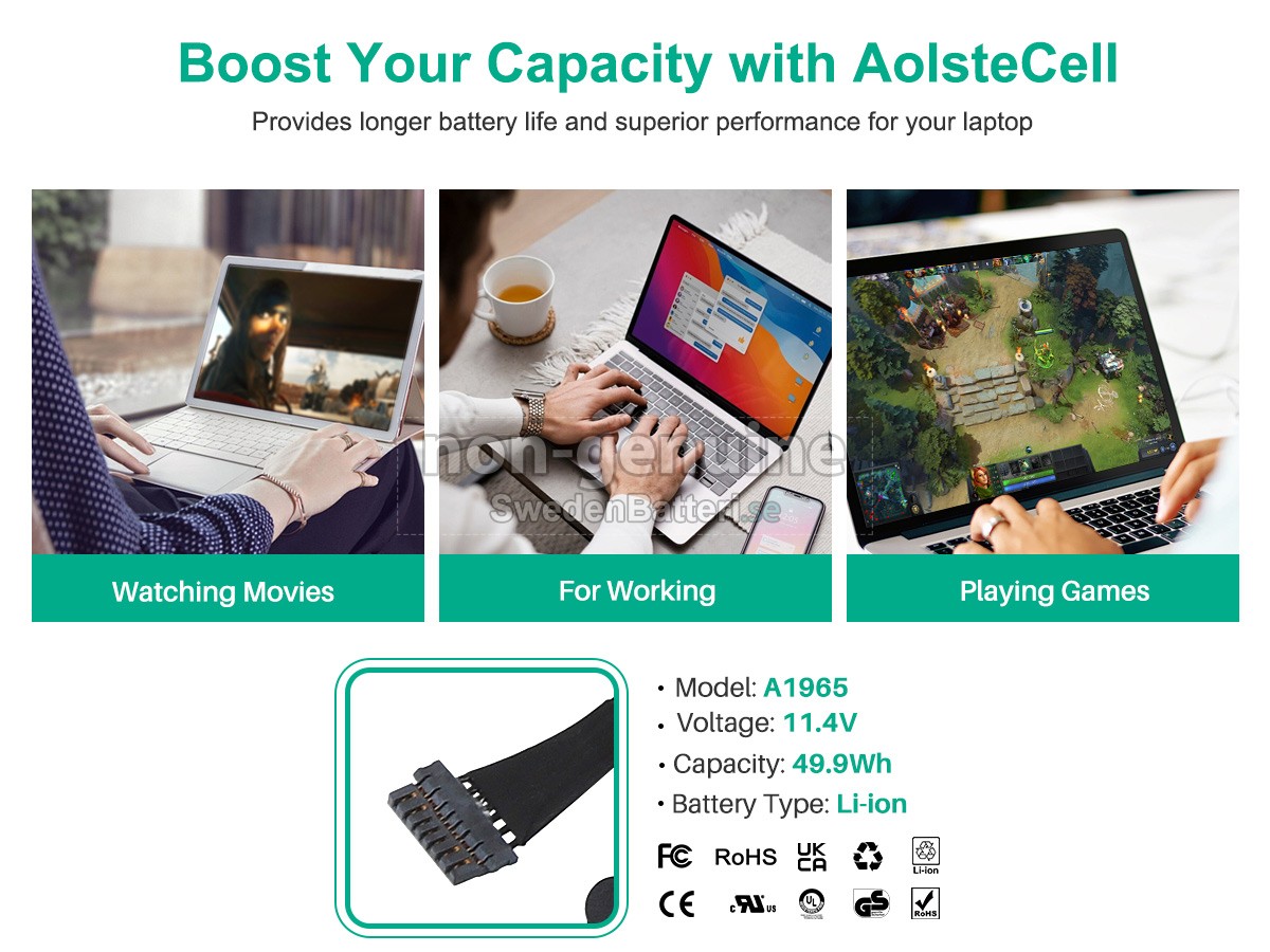 Det nya Apple 020-02455 ersättningsbatteri för laptop i originalkvalitet är gjort av ett nyimporterat Grad A + batteri, TI-chip från Texas och ABS + PC miljöskyddssmaterialsom klarar höga temperaturer och är slitageskyddat, och som har genomgått mer än 100 säkerhetstester. Alla våra Apple 020-02455 laptopersättningsbatterier är förenliga med CE, UL, ROHS, ISO9001/9002 certifieringsstandarder, dess design är i linje med OEM-specifikationer och 100% kompatibelt med originalspecifikationer. Prestandan är stabilare, väntetiden är längre, nya Apple 020-02455 ersättningsbatteri av originalkvalitet passar olika omständigheter, så du kan använda din laptop närsomhelst, och slipper oroa dig över batteriet!
