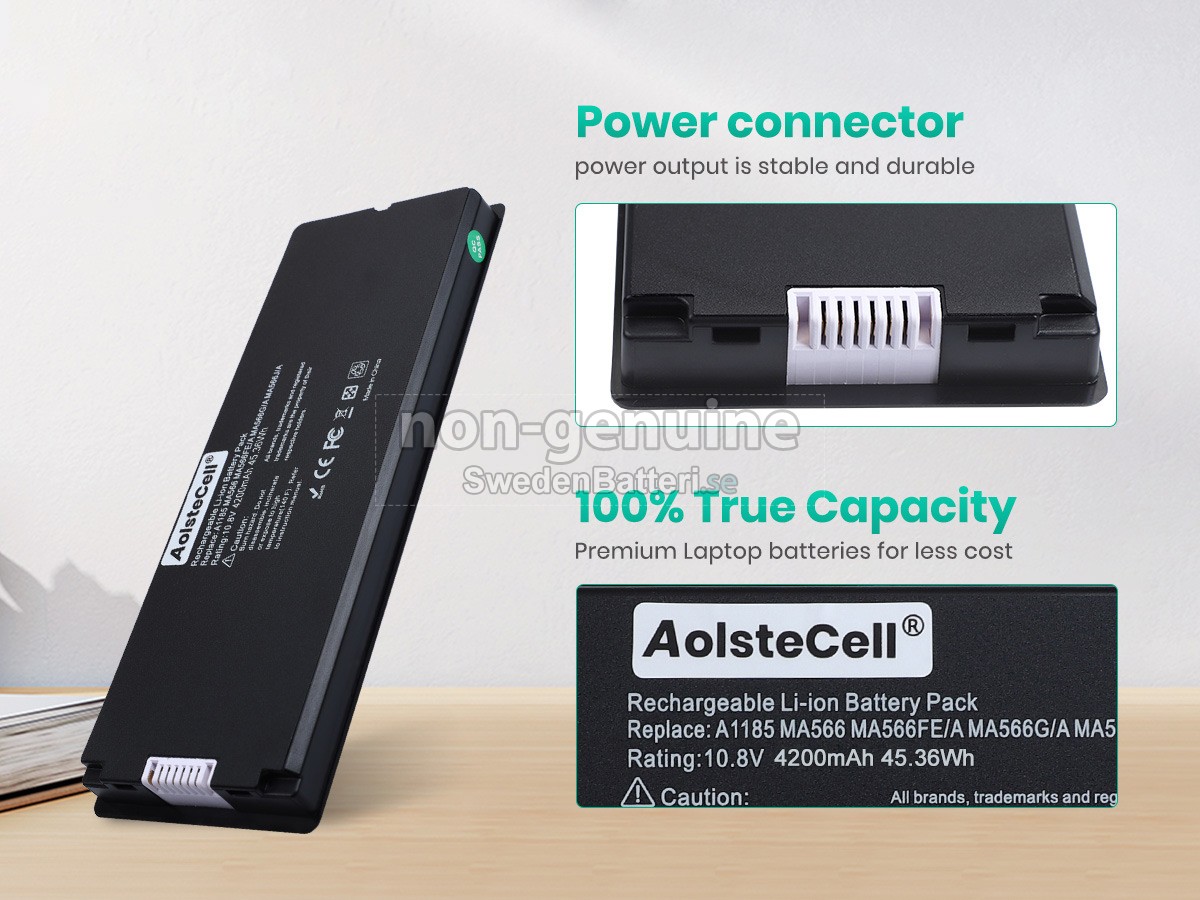 Det nya Apple A1181 ersättningsbatteri för laptop i originalkvalitet är gjort av ett nyimporterat Grad A + batteri, TI-chip från Texas och ABS + PC miljöskyddssmaterialsom klarar höga temperaturer och är slitageskyddat, och som har genomgått mer än 100 säkerhetstester. Alla våra Apple A1181 laptopersättningsbatterier är förenliga med CE, UL, ROHS, ISO9001/9002 certifieringsstandarder, dess design är i linje med OEM-specifikationer och 100% kompatibelt med originalspecifikationer. Prestandan är stabilare, väntetiden är längre, nya Apple A1181 ersättningsbatteri av originalkvalitet passar olika omständigheter, så du kan använda din laptop närsomhelst, och slipper oroa dig över batteriet!