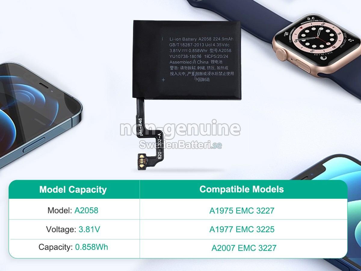 Om din klocka har stannat eller om sekundvisaren står och tickar på samma ställe så är det dags att byta batteri. Det nya Apple A2058 ersättningsbatteri för armbandsur i originalkvalitet är gjort av ett nyimporterat Grad A + batteri, TI-chip från Texas och ABS + PC miljöskyddssmaterialsom klarar höga temperaturer och är slitageskyddat, och som har genomgått mer än 100 säkerhetstester. Alla våra Apple A2058 högtalare ersättnings batterier är förenliga med CE, UL, ROHS, ISO9001/9002 certifieringsstandarder, dess design är i linje med OEM-specifikationer och 100% kompatibelt med originalspecifikationer. Prestandan är stabilare, väntetiden är längre, nya Apple A2058 ersättningsbatteri av originalkvalitet passar olika omständigheter, så du kan använda din armbandsur närsomhelst, och slipper oroa dig över batteriet!