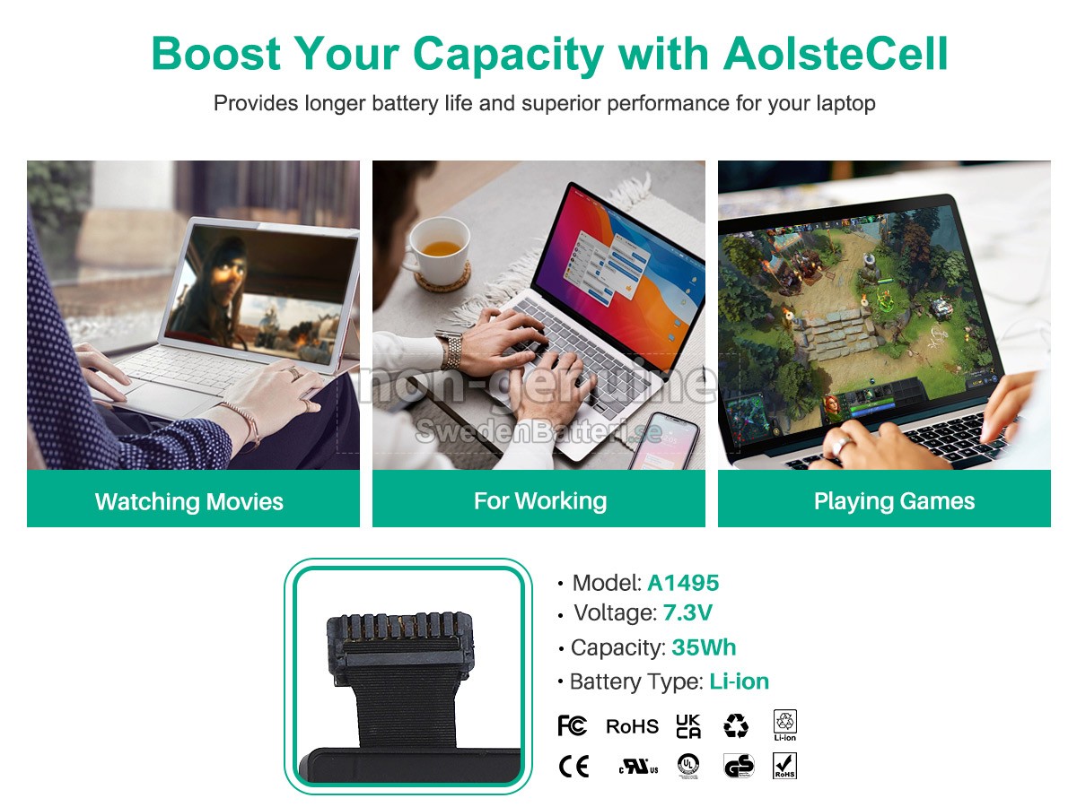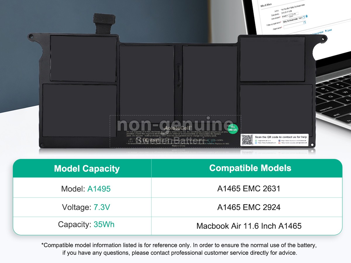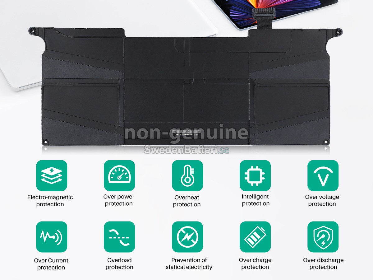 Det nya Apple MacBook Air 11.6 inch A1465 (Early 2014) ersättningsbatteri för laptop i originalkvalitet är gjort av ett nyimporterat Grad A + batteri, TI-chip från Texas och ABS + PC miljöskyddssmaterialsom klarar höga temperaturer och är slitageskyddat, och som har genomgått mer än 100 säkerhetstester. Alla våra Apple MacBook Air 11.6 inch A1465 (Early 2014) laptopersättningsbatterier är förenliga med CE, UL, ROHS, ISO9001/9002 certifieringsstandarder, dess design är i linje med OEM-specifikationer och 100% kompatibelt med originalspecifikationer. Prestandan är stabilare, väntetiden är längre, nya Apple MacBook Air 11.6 inch A1465 (Early 2014) ersättningsbatteri av originalkvalitet passar olika omständigheter, så du kan använda din laptop närsomhelst, och slipper oroa dig över batteriet!