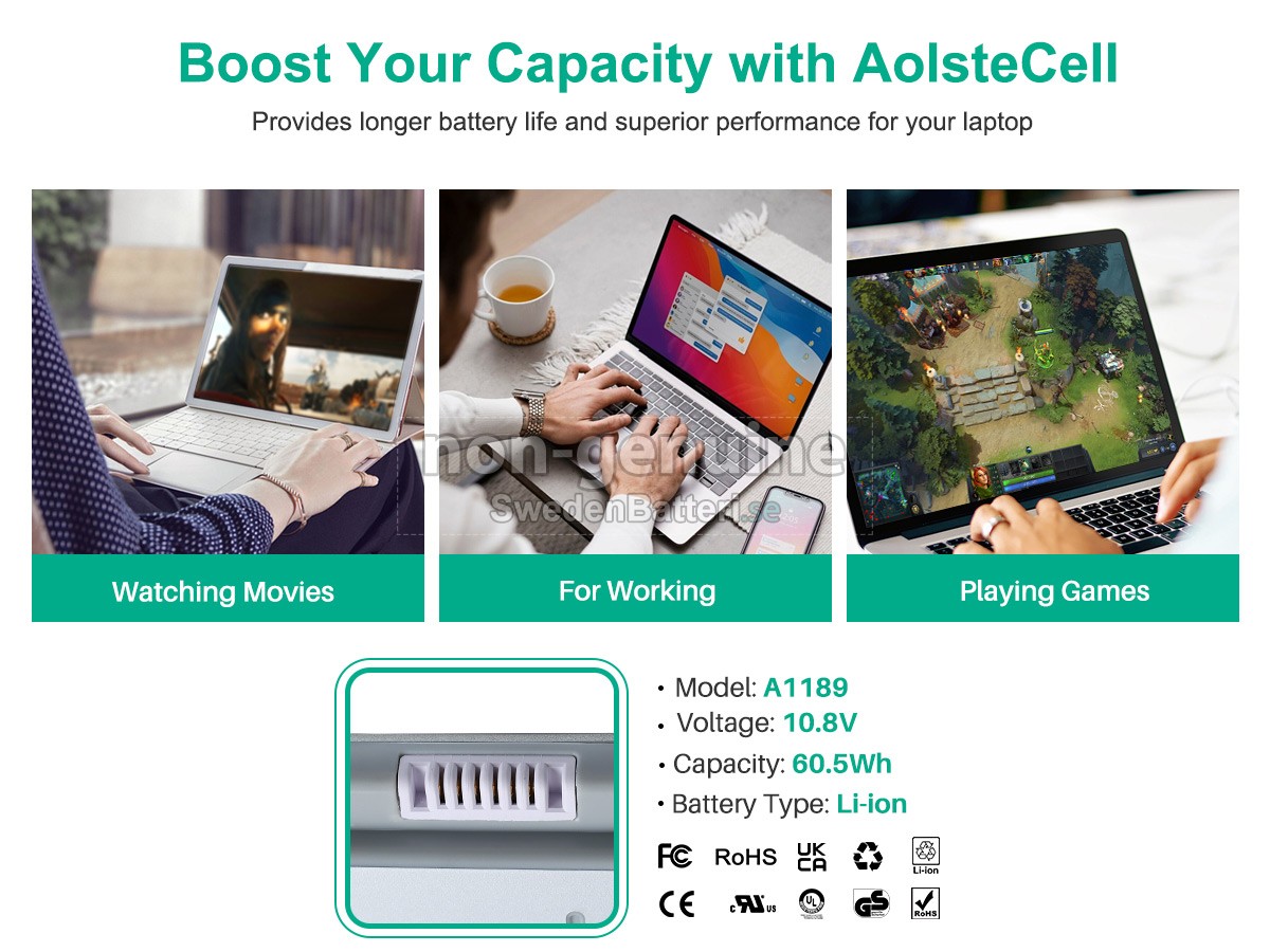 Det nya Apple MacBook Pro 17 inch MA611LL/A ersättningsbatteri för laptop i originalkvalitet är gjort av ett nyimporterat Grad A + batteri, TI-chip från Texas och ABS + PC miljöskyddssmaterialsom klarar höga temperaturer och är slitageskyddat, och som har genomgått mer än 100 säkerhetstester. Alla våra Apple MacBook Pro 17 inch MA611LL/A laptopersättningsbatterier är förenliga med CE, UL, ROHS, ISO9001/9002 certifieringsstandarder, dess design är i linje med OEM-specifikationer och 100% kompatibelt med originalspecifikationer. Prestandan är stabilare, väntetiden är längre, nya Apple MacBook Pro 17 inch MA611LL/A ersättningsbatteri av originalkvalitet passar olika omständigheter, så du kan använda din laptop närsomhelst, och slipper oroa dig över batteriet!