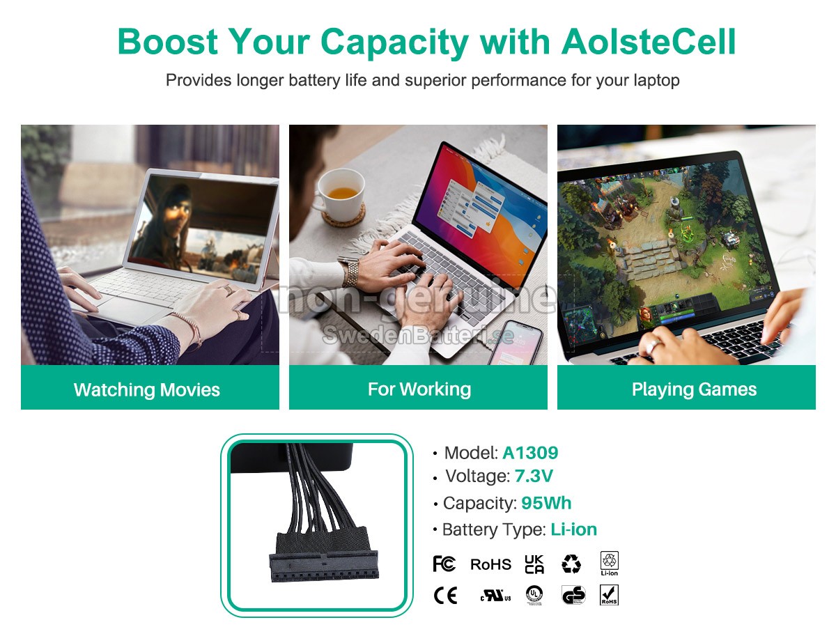 Det nya Apple MacBook Pro 17 inch MC226J/A ersättningsbatteri för laptop i originalkvalitet är gjort av ett nyimporterat Grad A + batteri, TI-chip från Texas och ABS + PC miljöskyddssmaterialsom klarar höga temperaturer och är slitageskyddat, och som har genomgått mer än 100 säkerhetstester. Alla våra Apple MacBook Pro 17 inch MC226J/A laptopersättningsbatterier är förenliga med CE, UL, ROHS, ISO9001/9002 certifieringsstandarder, dess design är i linje med OEM-specifikationer och 100% kompatibelt med originalspecifikationer. Prestandan är stabilare, väntetiden är längre, nya Apple MacBook Pro 17 inch MC226J/A ersättningsbatteri av originalkvalitet passar olika omständigheter, så du kan använda din laptop närsomhelst, och slipper oroa dig över batteriet!