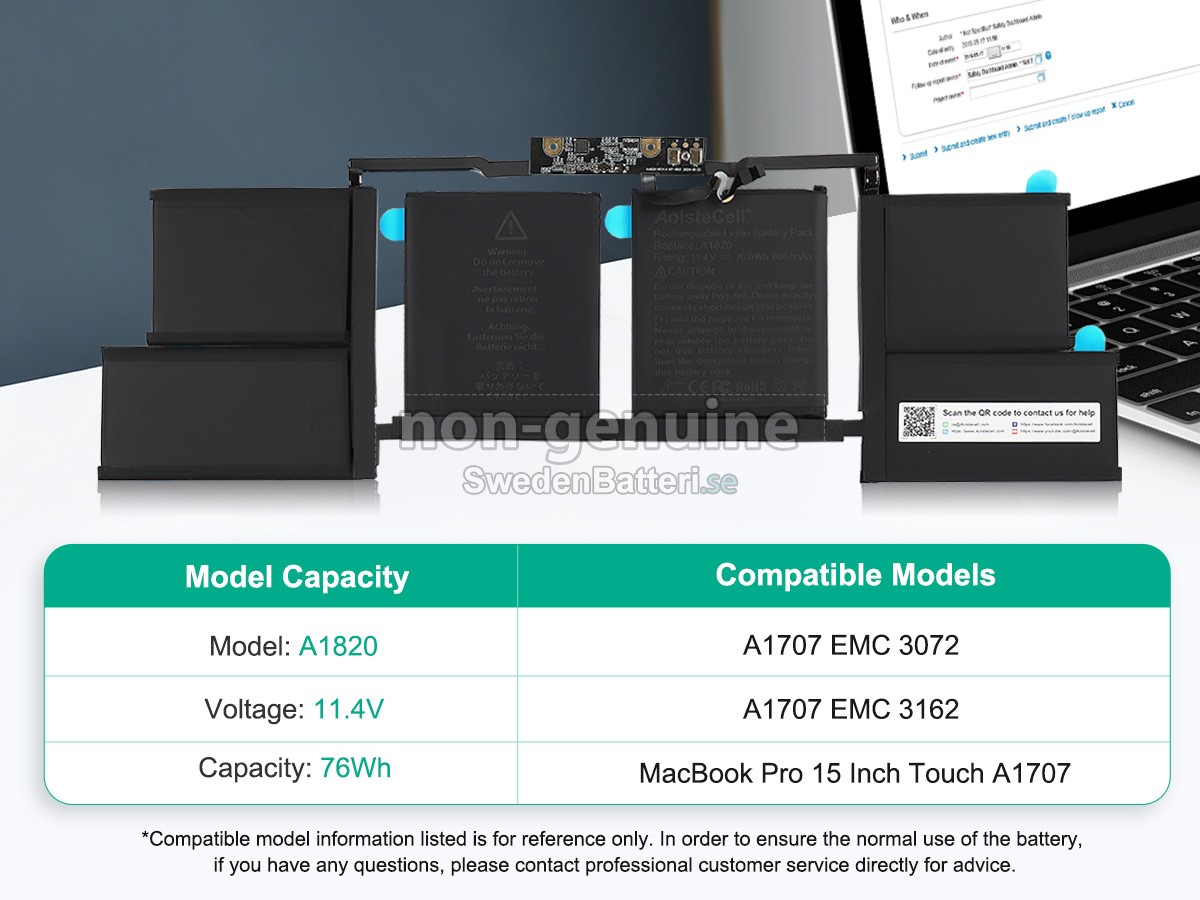 Som en professionellt batteriföretag i Sverige, är vi hängivna till att erbjuda dig högkalitativa laptopbatterier, är strikta mot oss själva, tar större ansvar för dig, och har en riktig "kärna" som berör dig. Vi säljer inte bara batterier, utan även tjänster och tillit! Vi erbjuder en ettårig fri ersättning och 30-dagars pengarna tillbaka-garanti. Splitternya Apple MacBook Pro Core I7 3.1GHZ 15.4 inch TOUCH A1707(EMC 3162) -batteriet av originalkvalitet och bra "kärn"-quality, dubbel försäkran.