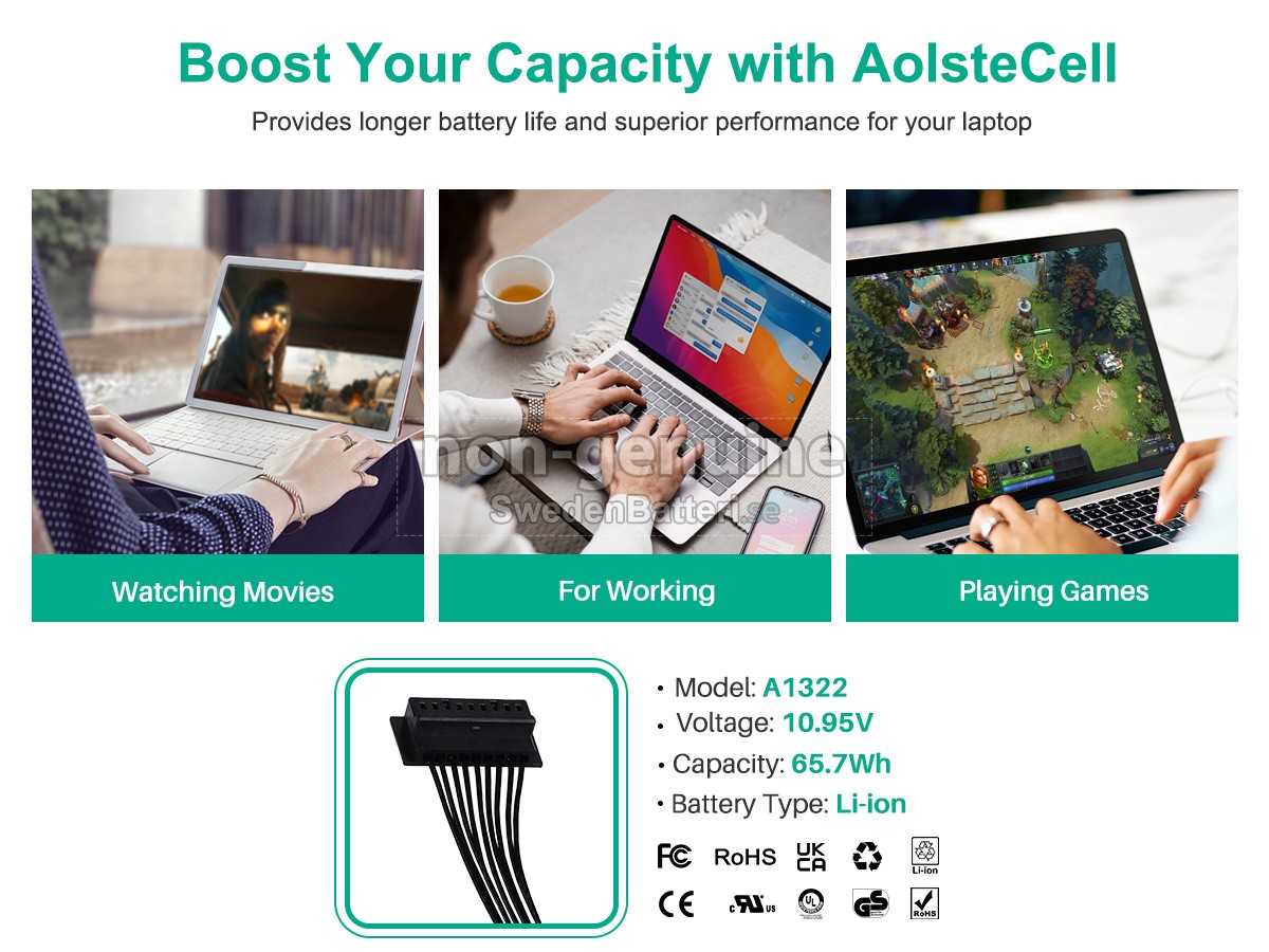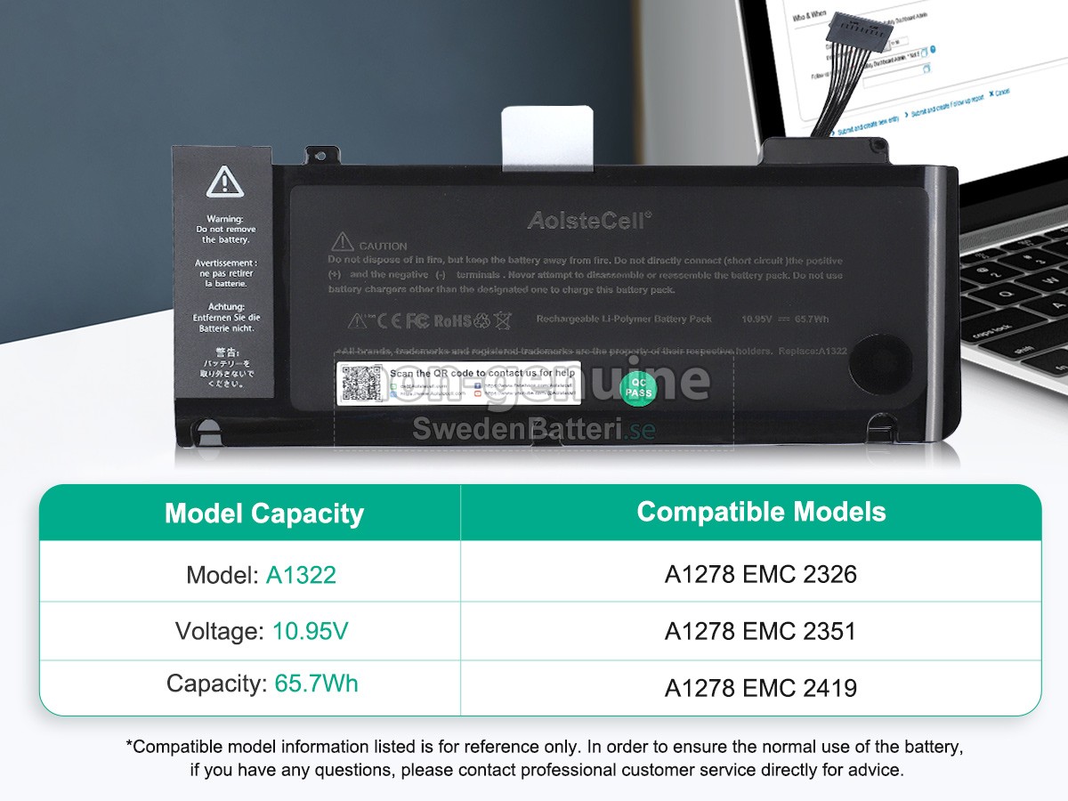 Det nya Apple MD314LL/A ersättningsbatteri för laptop i originalkvalitet är gjort av ett nyimporterat Grad A + batteri, TI-chip från Texas och ABS + PC miljöskyddssmaterialsom klarar höga temperaturer och är slitageskyddat, och som har genomgått mer än 100 säkerhetstester. Alla våra Apple MD314LL/A laptopersättningsbatterier är förenliga med CE, UL, ROHS, ISO9001/9002 certifieringsstandarder, dess design är i linje med OEM-specifikationer och 100% kompatibelt med originalspecifikationer. Prestandan är stabilare, väntetiden är längre, nya Apple MD314LL/A ersättningsbatteri av originalkvalitet passar olika omständigheter, så du kan använda din laptop närsomhelst, och slipper oroa dig över batteriet!