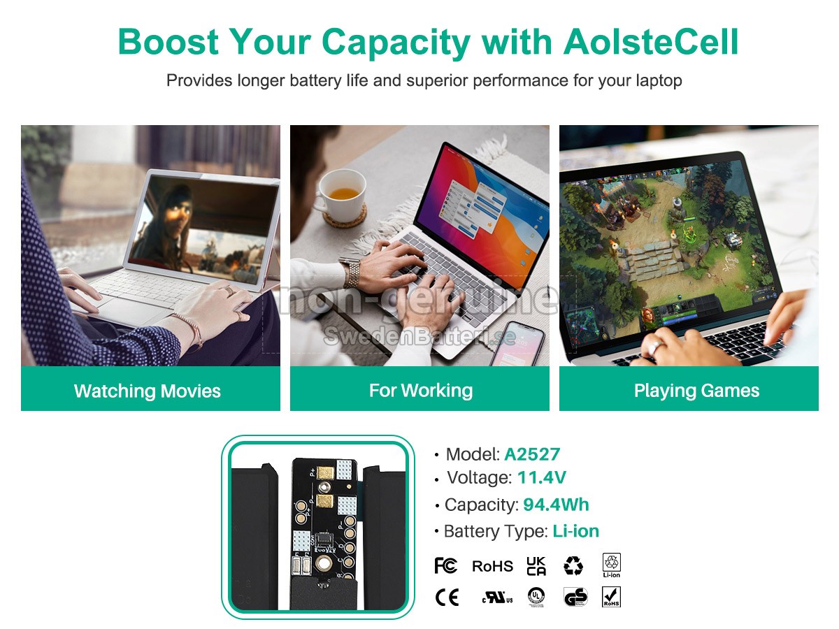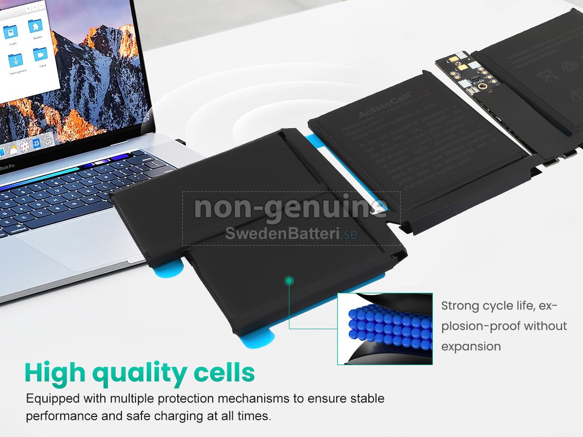 Det nya Apple MK1E3LL/A ersättningsbatteri för laptop i originalkvalitet är gjort av ett nyimporterat Grad A + batteri, TI-chip från Texas och ABS + PC miljöskyddssmaterialsom klarar höga temperaturer och är slitageskyddat, och som har genomgått mer än 100 säkerhetstester. Alla våra Apple MK1E3LL/A laptopersättningsbatterier är förenliga med CE, UL, ROHS, ISO9001/9002 certifieringsstandarder, dess design är i linje med OEM-specifikationer och 100% kompatibelt med originalspecifikationer. Prestandan är stabilare, väntetiden är längre, nya Apple MK1E3LL/A ersättningsbatteri av originalkvalitet passar olika omständigheter, så du kan använda din laptop närsomhelst, och slipper oroa dig över batteriet!