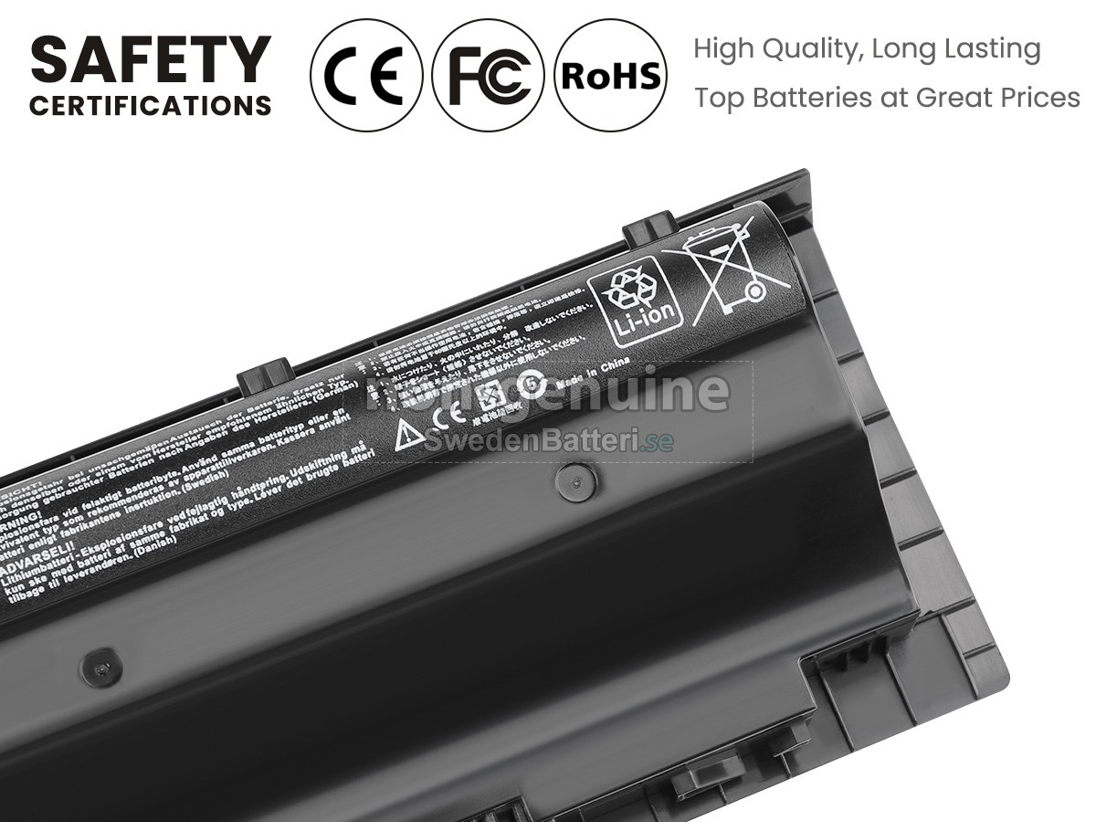 Det nya Asus A42-G75 ersättningsbatteri för laptop i originalkvalitet är gjort av ett nyimporterat Grad A + batteri, TI-chip från Texas och ABS + PC miljöskyddssmaterialsom klarar höga temperaturer och är slitageskyddat, och som har genomgått mer än 100 säkerhetstester. Alla våra Asus A42-G75 laptopersättningsbatterier är förenliga med CE, UL, ROHS, ISO9001/9002 certifieringsstandarder, dess design är i linje med OEM-specifikationer och 100% kompatibelt med originalspecifikationer. Prestandan är stabilare, väntetiden är längre, nya Asus A42-G75 ersättningsbatteri av originalkvalitet passar olika omständigheter, så du kan använda din laptop närsomhelst, och slipper oroa dig över batteriet!