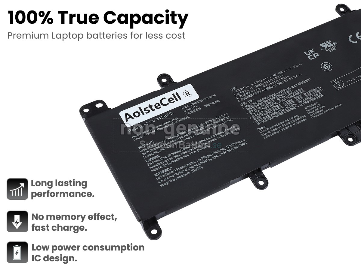 Det nya Asus C21N2014(2ICP4/59/134) ersättningsbatteri för laptop i originalkvalitet är gjort av ett nyimporterat Grad A + batteri, TI-chip från Texas och ABS + PC miljöskyddssmaterialsom klarar höga temperaturer och är slitageskyddat, och som har genomgått mer än 100 säkerhetstester. Alla våra Asus C21N2014(2ICP4/59/134) laptopersättningsbatterier är förenliga med CE, UL, ROHS, ISO9001/9002 certifieringsstandarder, dess design är i linje med OEM-specifikationer och 100% kompatibelt med originalspecifikationer. Prestandan är stabilare, väntetiden är längre, nya Asus C21N2014(2ICP4/59/134) ersättningsbatteri av originalkvalitet passar olika omständigheter, så du kan använda din laptop närsomhelst, och slipper oroa dig över batteriet!