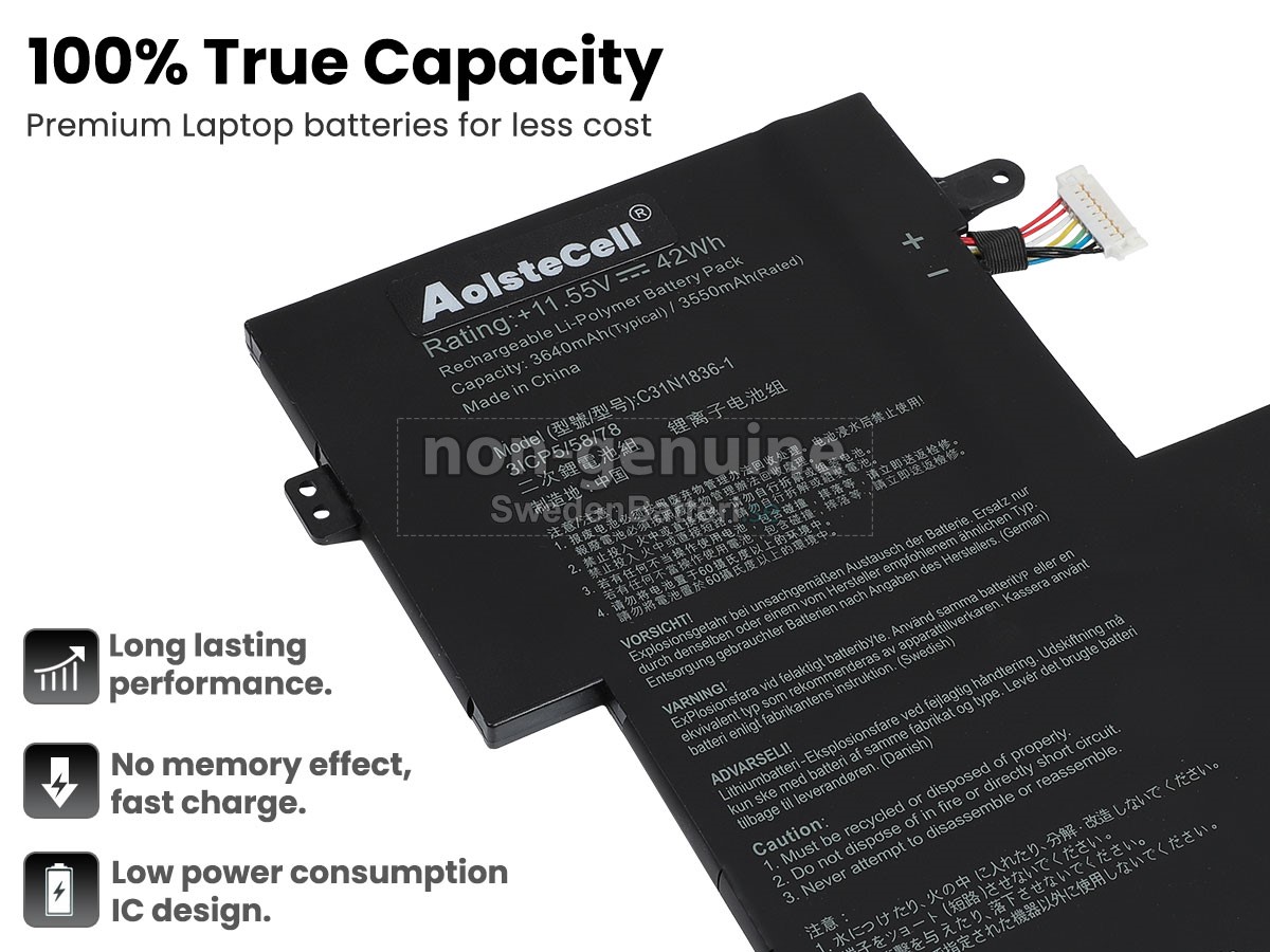 Det nya Asus Chromebook C204EE ersättningsbatteri för laptop i originalkvalitet är gjort av ett nyimporterat Grad A + batteri, TI-chip från Texas och ABS + PC miljöskyddssmaterialsom klarar höga temperaturer och är slitageskyddat, och som har genomgått mer än 100 säkerhetstester. Alla våra Asus Chromebook C204EE laptopersättningsbatterier är förenliga med CE, UL, ROHS, ISO9001/9002 certifieringsstandarder, dess design är i linje med OEM-specifikationer och 100% kompatibelt med originalspecifikationer. Prestandan är stabilare, väntetiden är längre, nya Asus Chromebook C204EE ersättningsbatteri av originalkvalitet passar olika omständigheter, så du kan använda din laptop närsomhelst, och slipper oroa dig över batteriet!