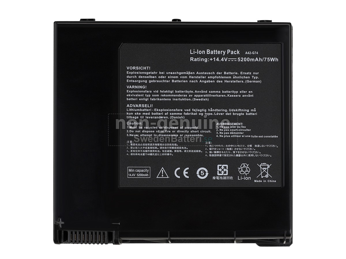 Det nya Asus G74SX-XA1 ersättningsbatteri för laptop i originalkvalitet är gjort av ett nyimporterat Grad A + batteri, TI-chip från Texas och ABS + PC miljöskyddssmaterialsom klarar höga temperaturer och är slitageskyddat, och som har genomgått mer än 100 säkerhetstester. Alla våra Asus G74SX-XA1 laptopersättningsbatterier är förenliga med CE, UL, ROHS, ISO9001/9002 certifieringsstandarder, dess design är i linje med OEM-specifikationer och 100% kompatibelt med originalspecifikationer. Prestandan är stabilare, väntetiden är längre, nya Asus G74SX-XA1 ersättningsbatteri av originalkvalitet passar olika omständigheter, så du kan använda din laptop närsomhelst, och slipper oroa dig över batteriet!
