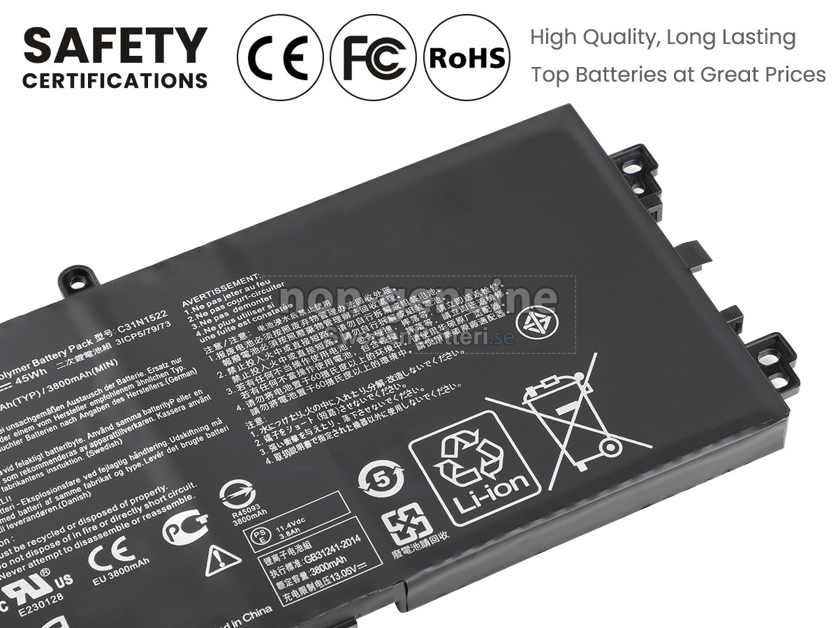 Det nya Asus N593UB ersättningsbatteri för laptop i originalkvalitet är gjort av ett nyimporterat Grad A + batteri, TI-chip från Texas och ABS + PC miljöskyddssmaterialsom klarar höga temperaturer och är slitageskyddat, och som har genomgått mer än 100 säkerhetstester. Alla våra Asus N593UB laptopersättningsbatterier är förenliga med CE, UL, ROHS, ISO9001/9002 certifieringsstandarder, dess design är i linje med OEM-specifikationer och 100% kompatibelt med originalspecifikationer. Prestandan är stabilare, väntetiden är längre, nya Asus N593UB ersättningsbatteri av originalkvalitet passar olika omständigheter, så du kan använda din laptop närsomhelst, och slipper oroa dig över batteriet!