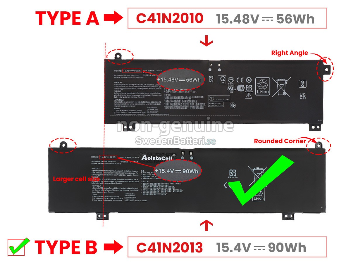 Som en professionellt batteriföretag i Sverige, är vi hängivna till att erbjuda dig högkalitativa laptopbatterier, är strikta mot oss själva, tar större ansvar för dig, och har en riktig "kärna" som berör dig. Vi säljer inte bara batterier, utan även tjänster och tillit! Vi erbjuder en ettårig fri ersättning och 30-dagars pengarna tillbaka-garanti. Splitternya Asus ProART STUDIOBook 16 OLED H5600QM-XB96 -batteriet av originalkvalitet och bra "kärn"-quality, dubbel försäkran.