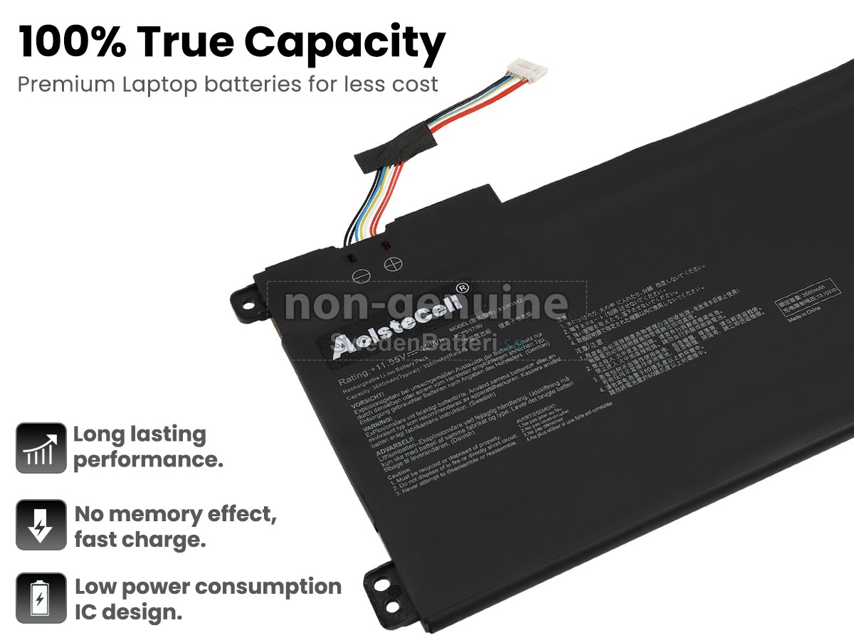 Det nya Asus VivoBook 14 E410MA-EK316TS ersättningsbatteri för laptop i originalkvalitet är gjort av ett nyimporterat Grad A + batteri, TI-chip från Texas och ABS + PC miljöskyddssmaterialsom klarar höga temperaturer och är slitageskyddat, och som har genomgått mer än 100 säkerhetstester. Alla våra Asus VivoBook 14 E410MA-EK316TS laptopersättningsbatterier är förenliga med CE, UL, ROHS, ISO9001/9002 certifieringsstandarder, dess design är i linje med OEM-specifikationer och 100% kompatibelt med originalspecifikationer. Prestandan är stabilare, väntetiden är längre, nya Asus VivoBook 14 E410MA-EK316TS ersättningsbatteri av originalkvalitet passar olika omständigheter, så du kan använda din laptop närsomhelst, och slipper oroa dig över batteriet!