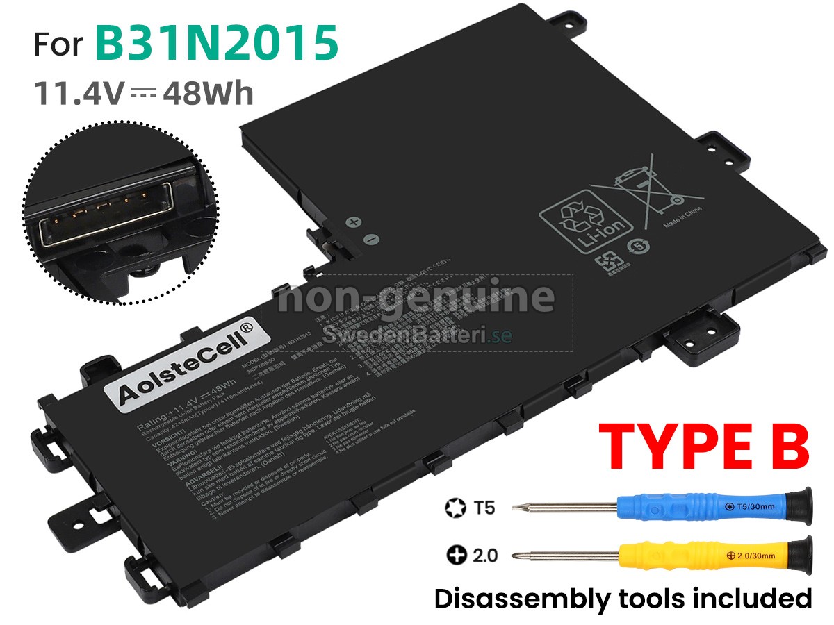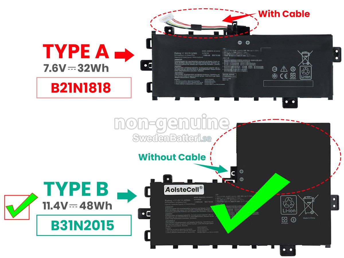 Det nya Asus VivoBook 17 S712EA ersättningsbatteri för laptop i originalkvalitet är gjort av ett nyimporterat Grad A + batteri, TI-chip från Texas och ABS + PC miljöskyddssmaterialsom klarar höga temperaturer och är slitageskyddat, och som har genomgått mer än 100 säkerhetstester. Alla våra Asus VivoBook 17 S712EA laptopersättningsbatterier är förenliga med CE, UL, ROHS, ISO9001/9002 certifieringsstandarder, dess design är i linje med OEM-specifikationer och 100% kompatibelt med originalspecifikationer. Prestandan är stabilare, väntetiden är längre, nya Asus VivoBook 17 S712EA ersättningsbatteri av originalkvalitet passar olika omständigheter, så du kan använda din laptop närsomhelst, och slipper oroa dig över batteriet!