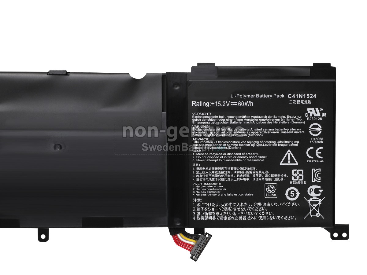 Det nya Asus ZenBook Pro UX501VW-FI109R ersättningsbatteri för laptop i originalkvalitet är gjort av ett nyimporterat Grad A + batteri, TI-chip från Texas och ABS + PC miljöskyddssmaterialsom klarar höga temperaturer och är slitageskyddat, och som har genomgått mer än 100 säkerhetstester. Alla våra Asus ZenBook Pro UX501VW-FI109R laptopersättningsbatterier är förenliga med CE, UL, ROHS, ISO9001/9002 certifieringsstandarder, dess design är i linje med OEM-specifikationer och 100% kompatibelt med originalspecifikationer. Prestandan är stabilare, väntetiden är längre, nya Asus ZenBook Pro UX501VW-FI109R ersättningsbatteri av originalkvalitet passar olika omständigheter, så du kan använda din laptop närsomhelst, och slipper oroa dig över batteriet!