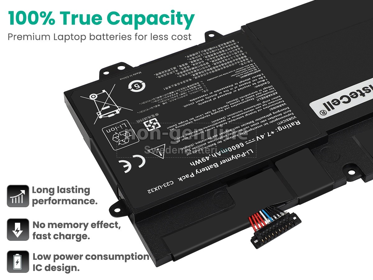 Det nya Asus ZenBook UX32A-DB51 ersättningsbatteri för laptop i originalkvalitet är gjort av ett nyimporterat Grad A + batteri, TI-chip från Texas och ABS + PC miljöskyddssmaterialsom klarar höga temperaturer och är slitageskyddat, och som har genomgått mer än 100 säkerhetstester. Alla våra Asus ZenBook UX32A-DB51 laptopersättningsbatterier är förenliga med CE, UL, ROHS, ISO9001/9002 certifieringsstandarder, dess design är i linje med OEM-specifikationer och 100% kompatibelt med originalspecifikationer. Prestandan är stabilare, väntetiden är längre, nya Asus ZenBook UX32A-DB51 ersättningsbatteri av originalkvalitet passar olika omständigheter, så du kan använda din laptop närsomhelst, och slipper oroa dig över batteriet!