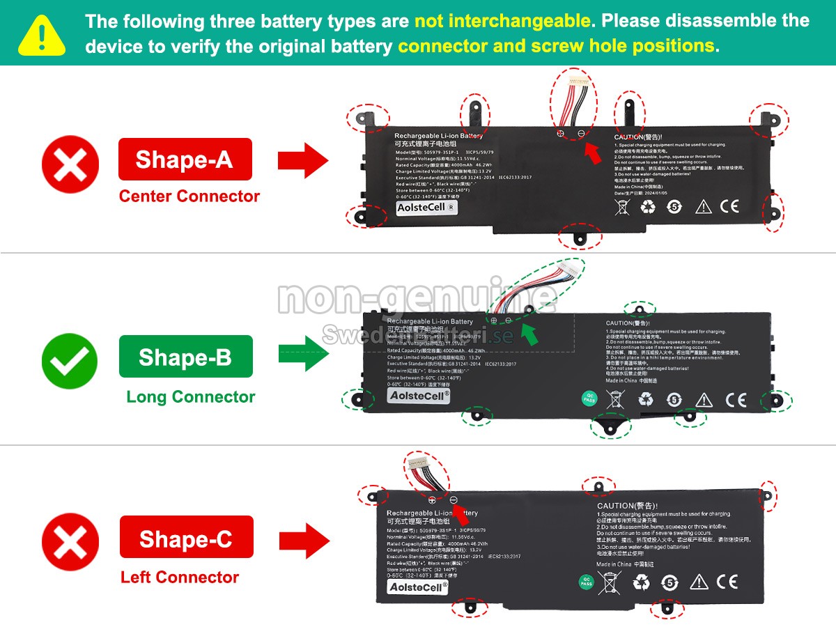 Det nya CHUWI 505979-3S1P-1 ersättningsbatteri för laptop i originalkvalitet är gjort av ett nyimporterat Grad A + batteri, TI-chip från Texas och ABS + PC miljöskyddssmaterialsom klarar höga temperaturer och är slitageskyddat, och som har genomgått mer än 100 säkerhetstester. Alla våra CHUWI 505979-3S1P-1 laptopersättningsbatterier är förenliga med CE, UL, ROHS, ISO9001/9002 certifieringsstandarder, dess design är i linje med OEM-specifikationer och 100% kompatibelt med originalspecifikationer. Prestandan är stabilare, väntetiden är längre, nya CHUWI 505979-3S1P-1 ersättningsbatteri av originalkvalitet passar olika omständigheter, så du kan använda din laptop närsomhelst, och slipper oroa dig över batteriet!