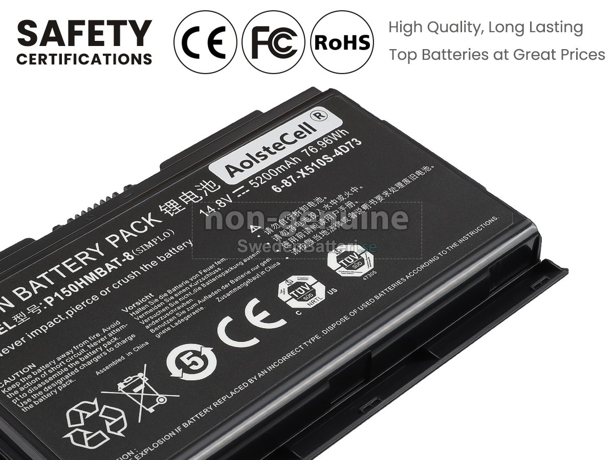 Det nya Clevo 6-87-X510S-4J7 ersättningsbatteri för laptop i originalkvalitet är gjort av ett nyimporterat Grad A + batteri, TI-chip från Texas och ABS + PC miljöskyddssmaterialsom klarar höga temperaturer och är slitageskyddat, och som har genomgått mer än 100 säkerhetstester. Alla våra Clevo 6-87-X510S-4J7 laptopersättningsbatterier är förenliga med CE, UL, ROHS, ISO9001/9002 certifieringsstandarder, dess design är i linje med OEM-specifikationer och 100% kompatibelt med originalspecifikationer. Prestandan är stabilare, väntetiden är längre, nya Clevo 6-87-X510S-4J7 ersättningsbatteri av originalkvalitet passar olika omständigheter, så du kan använda din laptop närsomhelst, och slipper oroa dig över batteriet!
