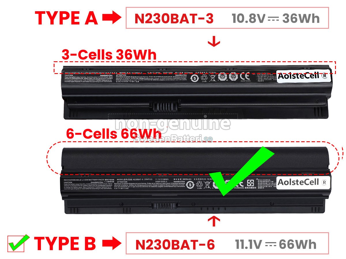 Som en professionellt batteriföretag i Sverige, är vi hängivna till att erbjuda dig högkalitativa laptopbatterier, är strikta mot oss själva, tar större ansvar för dig, och har en riktig "kärna" som berör dig. Vi säljer inte bara batterier, utan även tjänster och tillit! Vi erbjuder en ettårig fri ersättning och 30-dagars pengarna tillbaka-garanti. Splitternya Clevo N230BAT-3 -batteriet av originalkvalitet och bra "kärn"-quality, dubbel försäkran.