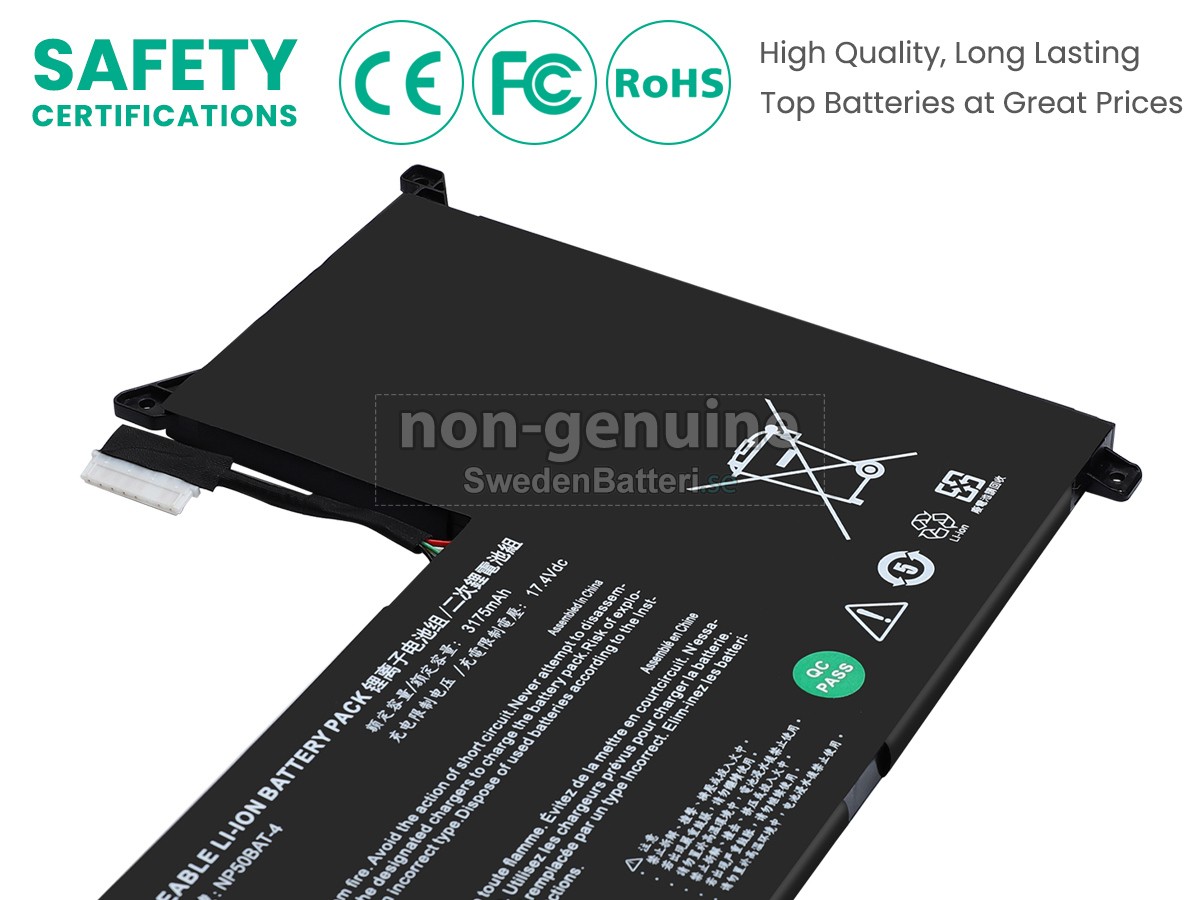 Det nya Clevo NP50HH ersättningsbatteri för laptop i originalkvalitet är gjort av ett nyimporterat Grad A + batteri, TI-chip från Texas och ABS + PC miljöskyddssmaterialsom klarar höga temperaturer och är slitageskyddat, och som har genomgått mer än 100 säkerhetstester. Alla våra Clevo NP50HH laptopersättningsbatterier är förenliga med CE, UL, ROHS, ISO9001/9002 certifieringsstandarder, dess design är i linje med OEM-specifikationer och 100% kompatibelt med originalspecifikationer. Prestandan är stabilare, väntetiden är längre, nya Clevo NP50HH ersättningsbatteri av originalkvalitet passar olika omständigheter, så du kan använda din laptop närsomhelst, och slipper oroa dig över batteriet!