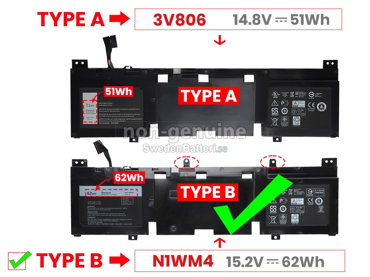 Det nya Dell Alienware 13 R1 ersättningsbatteri för laptop i originalkvalitet är gjort av ett nyimporterat Grad A + batteri, TI-chip från Texas och ABS + PC miljöskyddssmaterialsom klarar höga temperaturer och är slitageskyddat, och som har genomgått mer än 100 säkerhetstester. Alla våra Dell Alienware 13 R1 laptopersättningsbatterier är förenliga med CE, UL, ROHS, ISO9001/9002 certifieringsstandarder, dess design är i linje med OEM-specifikationer och 100% kompatibelt med originalspecifikationer. Prestandan är stabilare, väntetiden är längre, nya Dell Alienware 13 R1 ersättningsbatteri av originalkvalitet passar olika omständigheter, så du kan använda din laptop närsomhelst, och slipper oroa dig över batteriet!