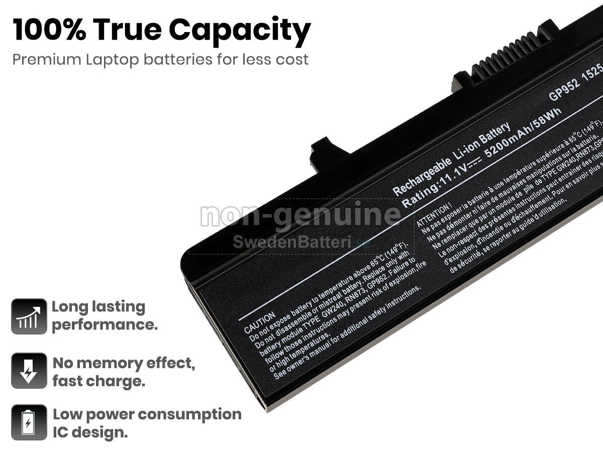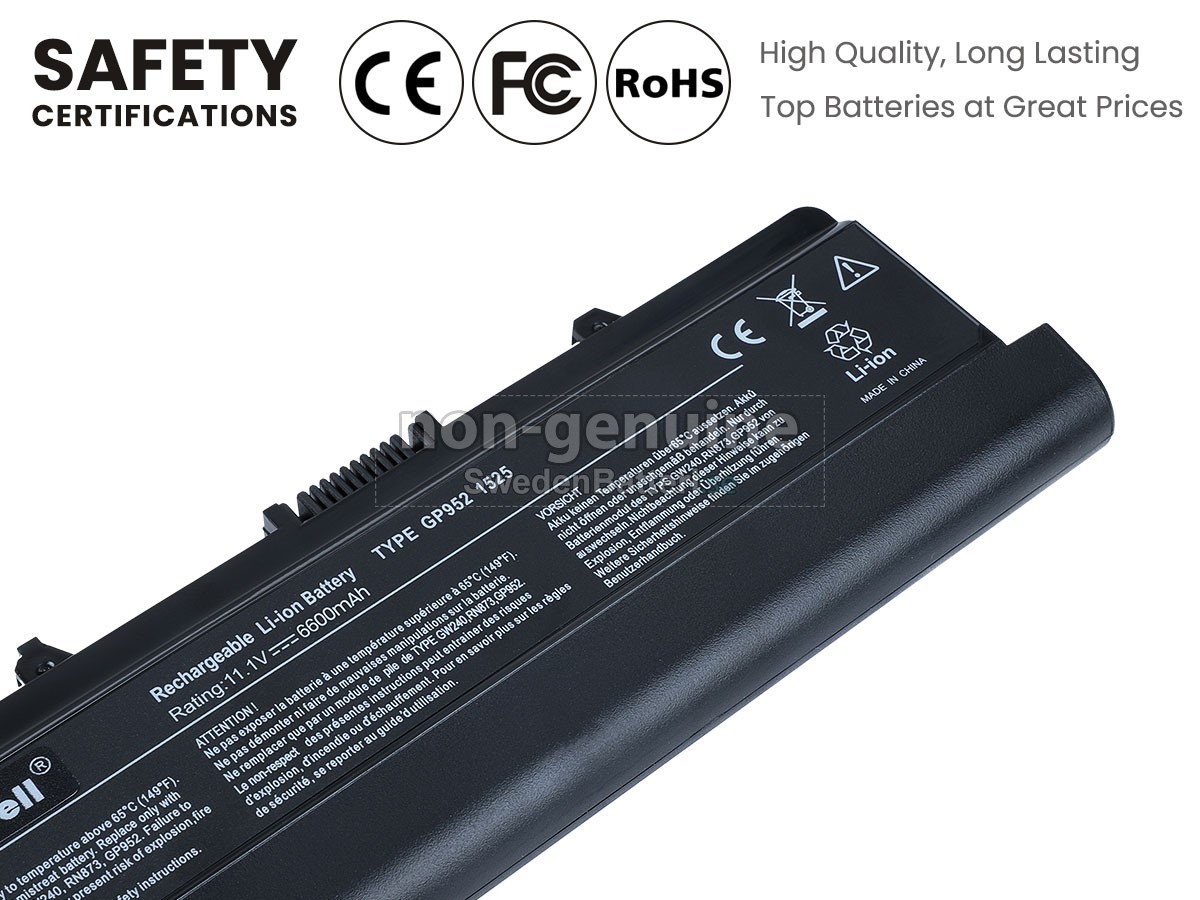 Det nya Dell M911G ersättningsbatteri för laptop i originalkvalitet är gjort av ett nyimporterat Grad A + batteri, TI-chip från Texas och ABS + PC miljöskyddssmaterialsom klarar höga temperaturer och är slitageskyddat, och som har genomgått mer än 100 säkerhetstester. Alla våra Dell M911G laptopersättningsbatterier är förenliga med CE, UL, ROHS, ISO9001/9002 certifieringsstandarder, dess design är i linje med OEM-specifikationer och 100% kompatibelt med originalspecifikationer. Prestandan är stabilare, väntetiden är längre, nya Dell M911G ersättningsbatteri av originalkvalitet passar olika omständigheter, så du kan använda din laptop närsomhelst, och slipper oroa dig över batteriet!