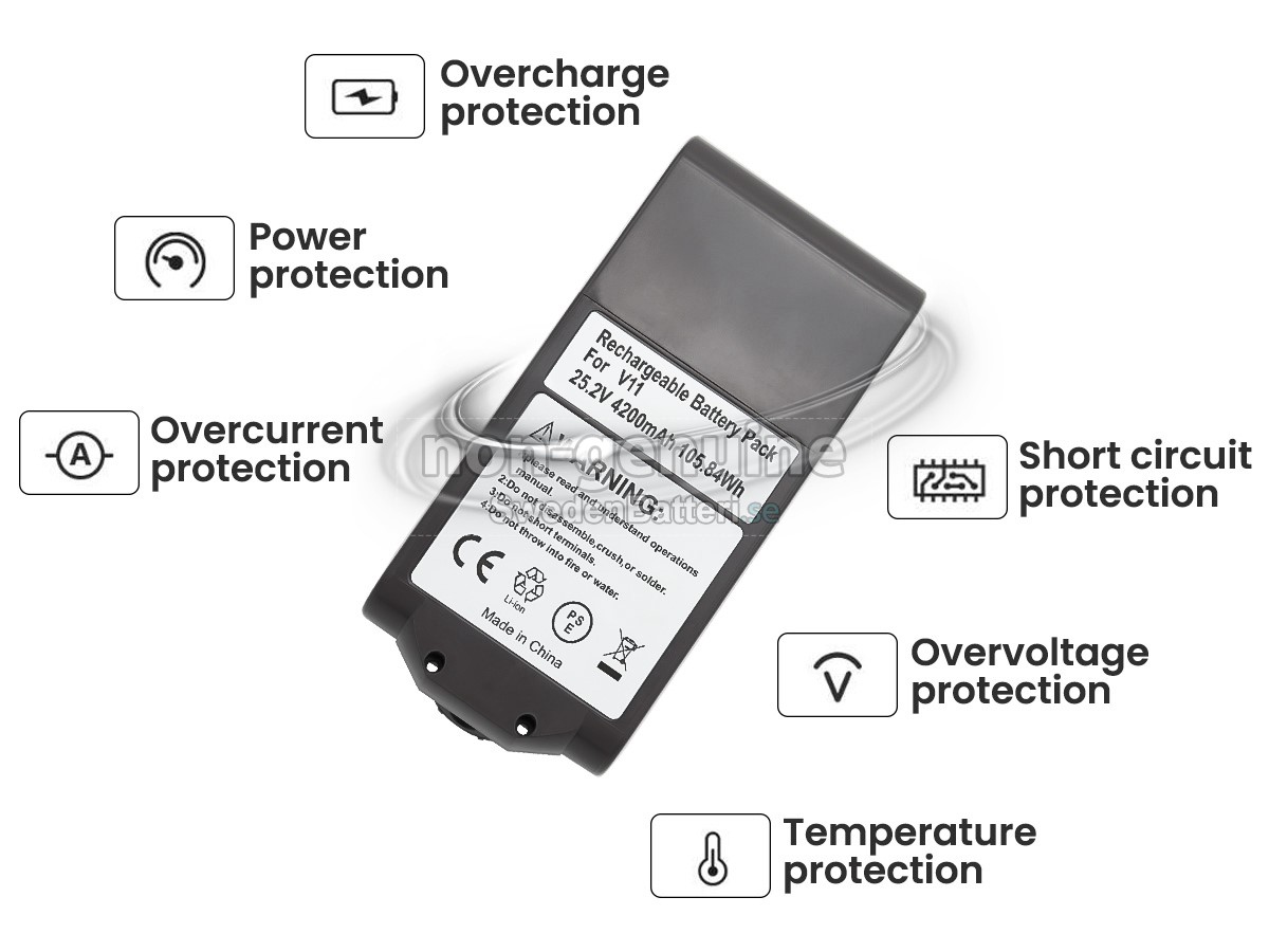 Det nya Dyson V11 ABSOLUTE ersättningsbatteri för dammsugar i originalkvalitet är gjort av ett nyimporterat Grad A + batteri, TI-chip från Texas och ABS + PC miljöskyddssmaterialsom klarar höga temperaturer och är slitageskyddat, och som har genomgått mer än 100 säkerhetstester. Alla våra Dyson V11 ABSOLUTE ersättnings dammsugarbatterier är förenliga med CE, UL, ROHS, ISO9001/9002 certifieringsstandarder, dess design är i linje med OEM-specifikationer och 100% kompatibelt med originalspecifikationer. Prestandan är stabilare, väntetiden är längre, nya Dyson V11 ABSOLUTE ersättningsbatteri av originalkvalitet passar olika omständigheter, så du kan använda din dammsugar närsomhelst, och slipper oroa dig över batteriet!
