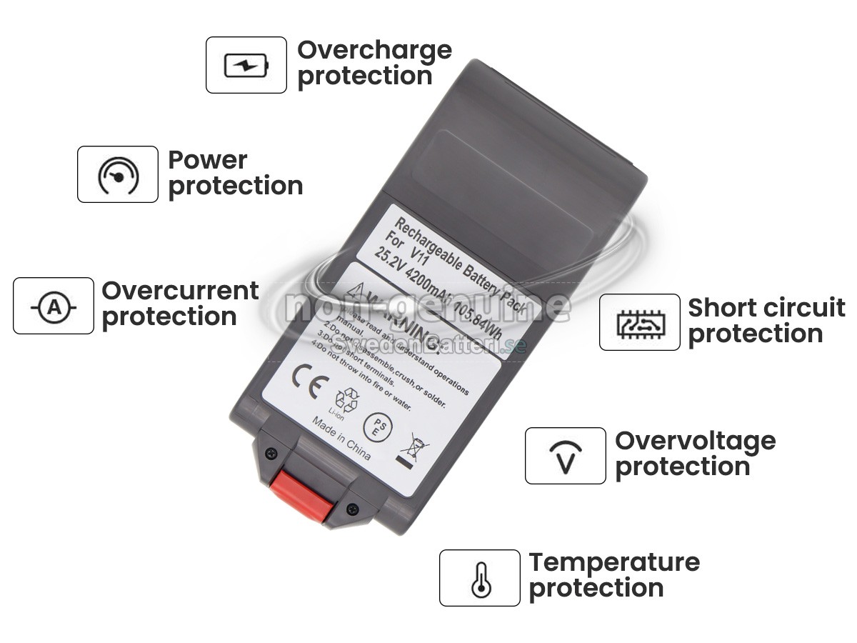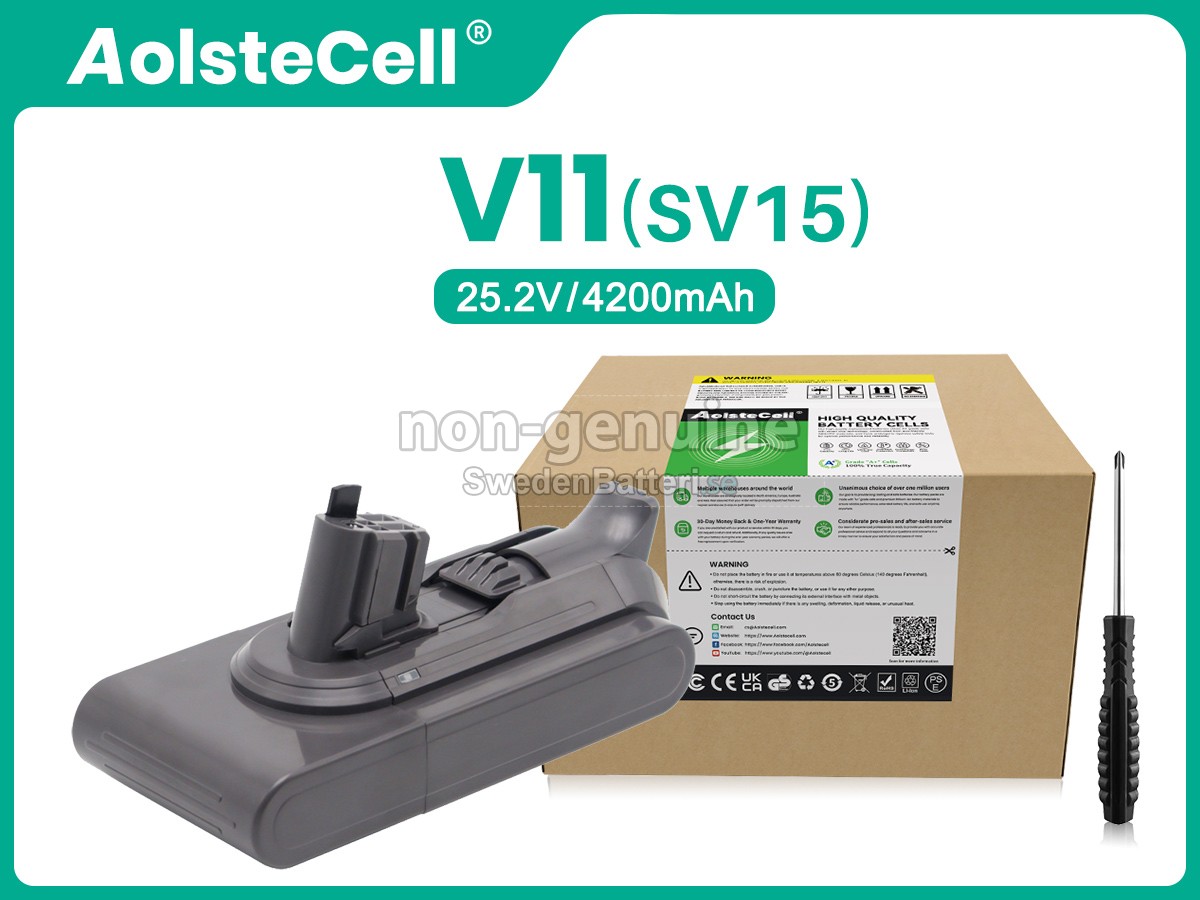 Som en professionellt batteriföretag i Sverige, är vi hängivna till att erbjuda dig högkalitativa dammsugarbatterier , är strikta mot oss själva, tar större ansvar för dig, och har en riktig "kärna" som berör dig. Vi säljer inte bara batterier, utan även tjänster och tillit! Vi erbjuder en ettårig fri ersättning och 30-dagars pengarna tillbaka-garanti. Splitternya Dyson V11-SV15 -batteriet av originalkvalitet och bra "kärn"-quality, dubbel försäkran.