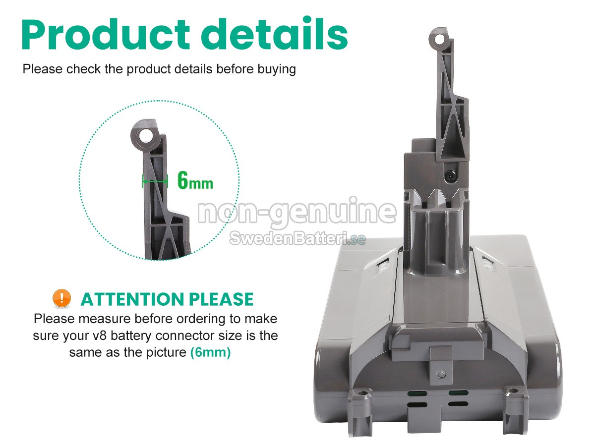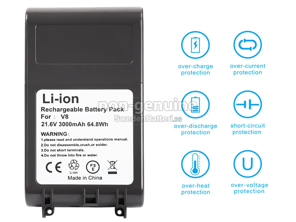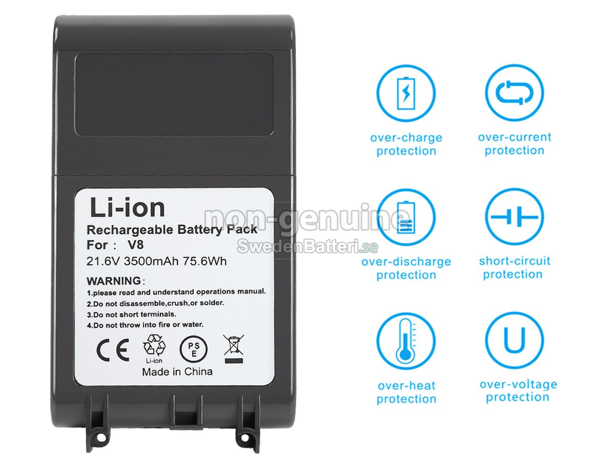 Som en professionellt batteriföretag i Sverige, är vi hängivna till att erbjuda dig högkalitativa dammsugarbatterier , är strikta mot oss själva, tar större ansvar för dig, och har en riktig "kärna" som berör dig. Vi säljer inte bara batterier, utan även tjänster och tillit! Vi erbjuder en ettårig fri ersättning och 30-dagars pengarna tillbaka-garanti. Splitternya Dyson V8 -batteriet av originalkvalitet och bra "kärn"-quality, dubbel försäkran.