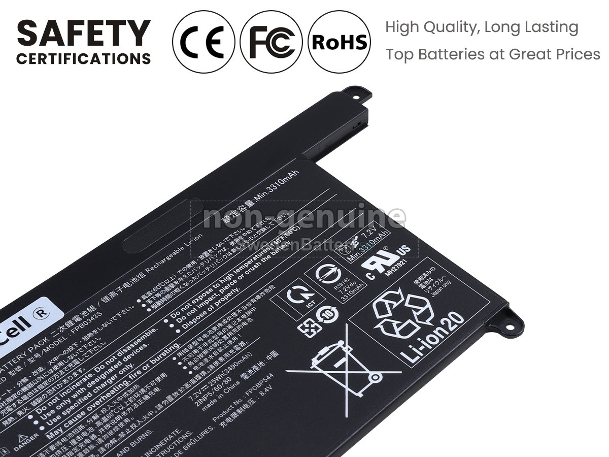Det nya Fujitsu FMVU75EUV3 ersättningsbatteri för laptop i originalkvalitet är gjort av ett nyimporterat Grad A + batteri, TI-chip från Texas och ABS + PC miljöskyddssmaterialsom klarar höga temperaturer och är slitageskyddat, och som har genomgått mer än 100 säkerhetstester. Alla våra Fujitsu FMVU75EUV3 laptopersättningsbatterier är förenliga med CE, UL, ROHS, ISO9001/9002 certifieringsstandarder, dess design är i linje med OEM-specifikationer och 100% kompatibelt med originalspecifikationer. Prestandan är stabilare, väntetiden är längre, nya Fujitsu FMVU75EUV3 ersättningsbatteri av originalkvalitet passar olika omständigheter, så du kan använda din laptop närsomhelst, och slipper oroa dig över batteriet!