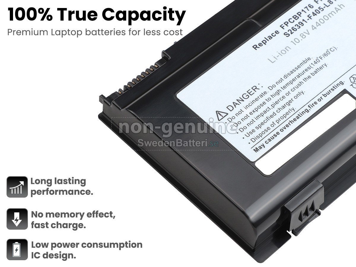 Det nya Fujitsu FPCBP176 ersättningsbatteri för laptop i originalkvalitet är gjort av ett nyimporterat Grad A + batteri, TI-chip från Texas och ABS + PC miljöskyddssmaterialsom klarar höga temperaturer och är slitageskyddat, och som har genomgått mer än 100 säkerhetstester. Alla våra Fujitsu FPCBP176 laptopersättningsbatterier är förenliga med CE, UL, ROHS, ISO9001/9002 certifieringsstandarder, dess design är i linje med OEM-specifikationer och 100% kompatibelt med originalspecifikationer. Prestandan är stabilare, väntetiden är längre, nya Fujitsu FPCBP176 ersättningsbatteri av originalkvalitet passar olika omständigheter, så du kan använda din laptop närsomhelst, och slipper oroa dig över batteriet!