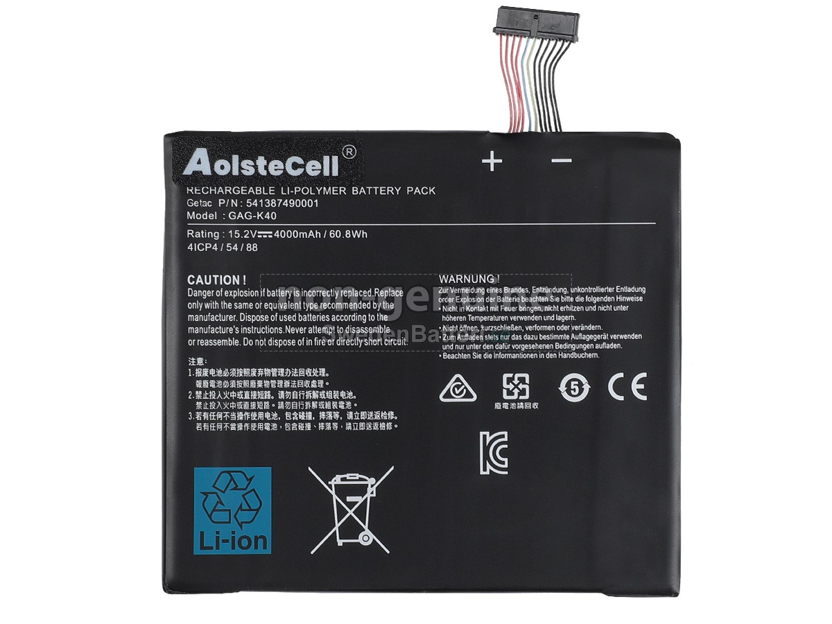 Det nya Getac GAG-K40 ersättningsbatteri för laptop i originalkvalitet är gjort av ett nyimporterat Grad A + batteri, TI-chip från Texas och ABS + PC miljöskyddssmaterialsom klarar höga temperaturer och är slitageskyddat, och som har genomgått mer än 100 säkerhetstester. Alla våra Getac GAG-K40 laptopersättningsbatterier är förenliga med CE, UL, ROHS, ISO9001/9002 certifieringsstandarder, dess design är i linje med OEM-specifikationer och 100% kompatibelt med originalspecifikationer. Prestandan är stabilare, väntetiden är längre, nya Getac GAG-K40 ersättningsbatteri av originalkvalitet passar olika omständigheter, så du kan använda din laptop närsomhelst, och slipper oroa dig över batteriet!