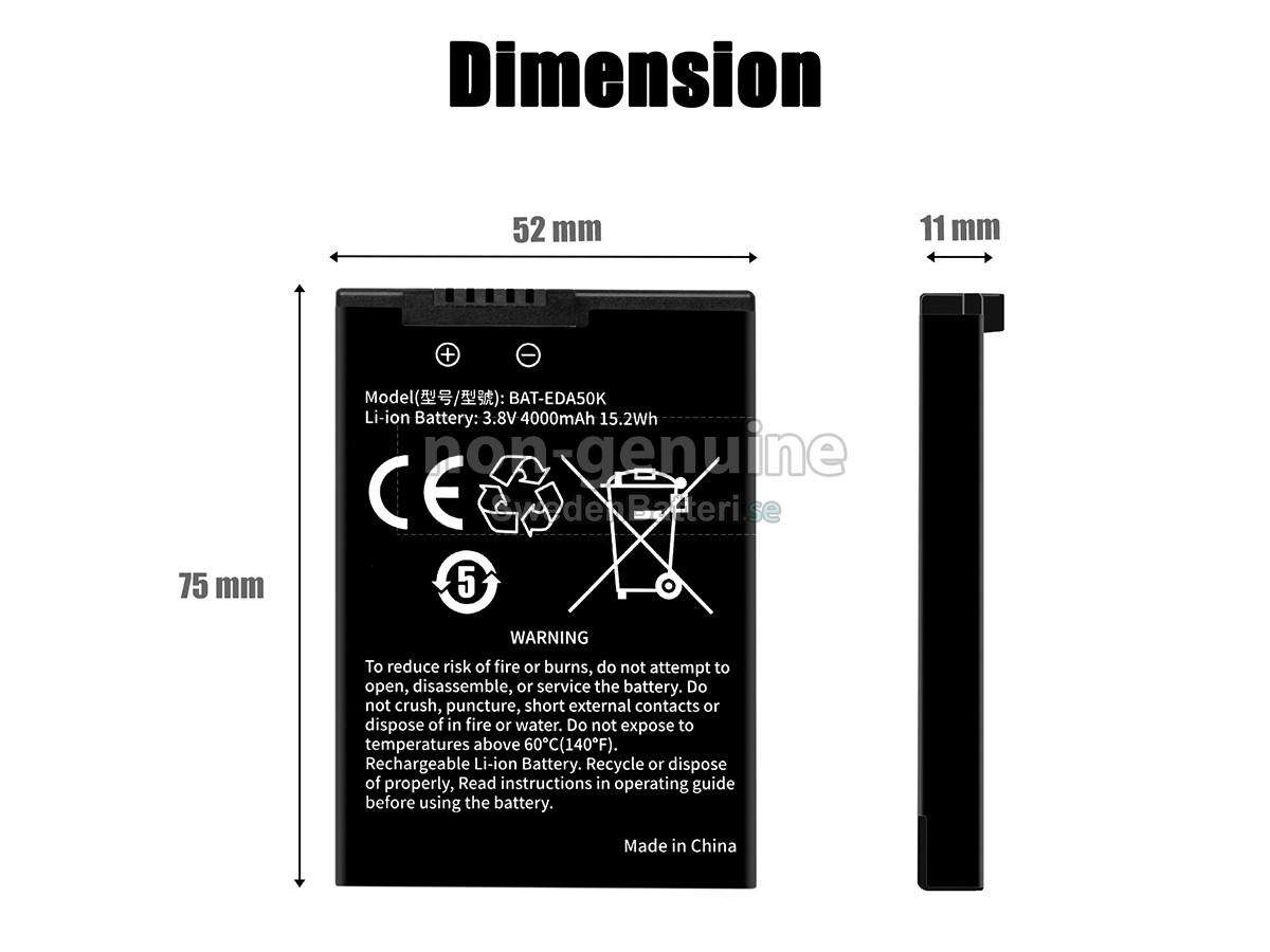 Om din enhet slutar fungera eller inte fungerar är det dags att byta ut batteri. Det nya Honeywell BAT-EDA50US ersättningsbatteri i originalkvalitet är gjort av ett nyimporterat Grad A + batteri, TI-chip från Texas och ABS + PC miljöskyddssmaterialsom klarar höga temperaturer och är slitageskyddat, och som har genomgått mer än 100 säkerhetstester. Alla våra Honeywell BAT-EDA50US ersättnings batterier är förenliga med CE, UL, ROHS, ISO9001/9002 certifieringsstandarder, dess design är i linje med OEM-specifikationer och 100% kompatibelt med originalspecifikationer. Prestandan är stabilare, väntetiden är längre, nya Honeywell BAT-EDA50US ersättningsbatteri av originalkvalitet passar olika omständigheter, så du kan använda din utrustning närsomhelst, och slipper oroa dig över batteriet!