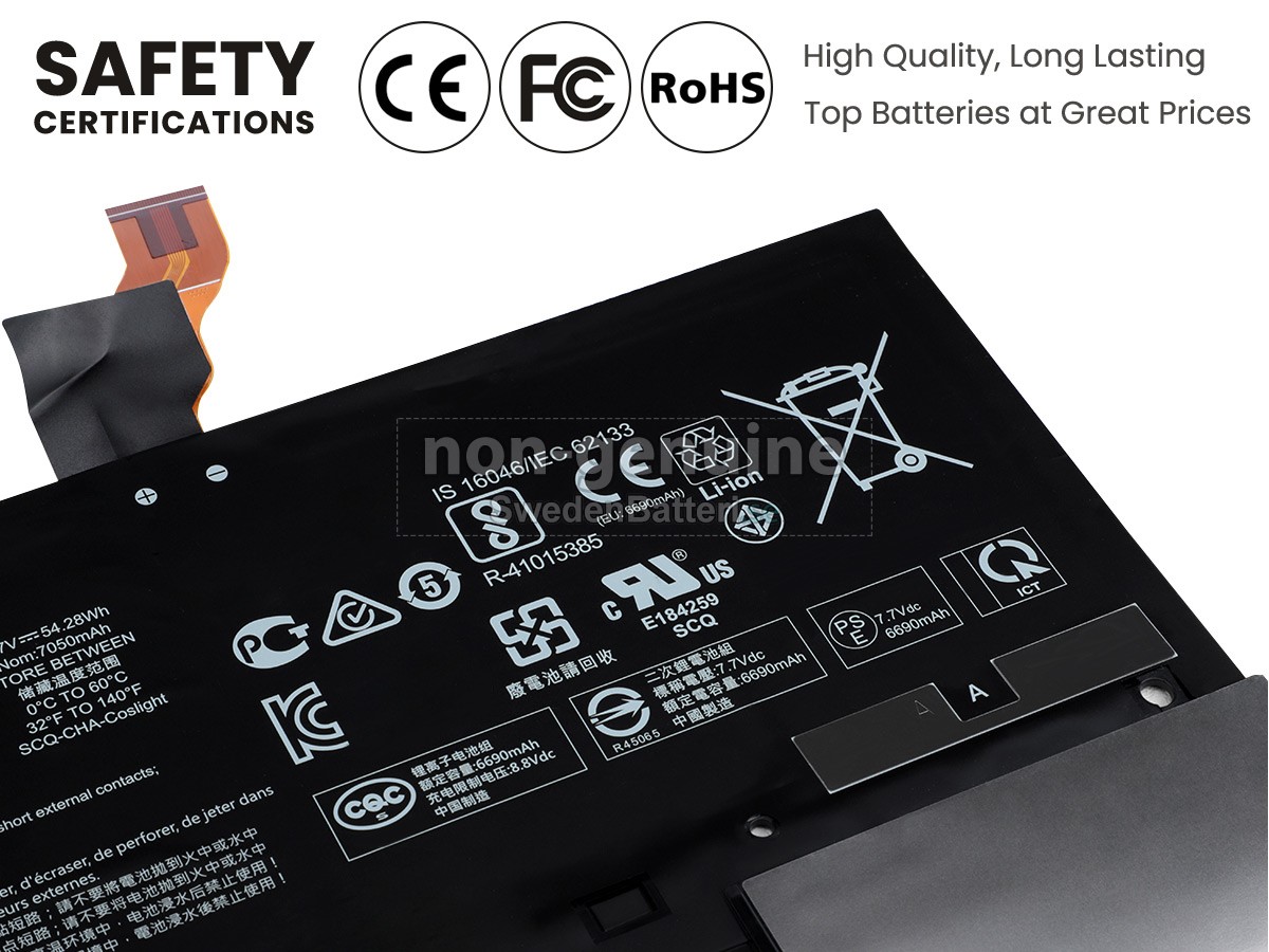 Det nya HP Spectre Folio 13-AK0009NX ersättningsbatteri för laptop i originalkvalitet är gjort av ett nyimporterat Grad A + batteri, TI-chip från Texas och ABS + PC miljöskyddssmaterialsom klarar höga temperaturer och är slitageskyddat, och som har genomgått mer än 100 säkerhetstester. Alla våra HP Spectre Folio 13-AK0009NX laptopersättningsbatterier är förenliga med CE, UL, ROHS, ISO9001/9002 certifieringsstandarder, dess design är i linje med OEM-specifikationer och 100% kompatibelt med originalspecifikationer. Prestandan är stabilare, väntetiden är längre, nya HP Spectre Folio 13-AK0009NX ersättningsbatteri av originalkvalitet passar olika omständigheter, så du kan använda din laptop närsomhelst, och slipper oroa dig över batteriet!