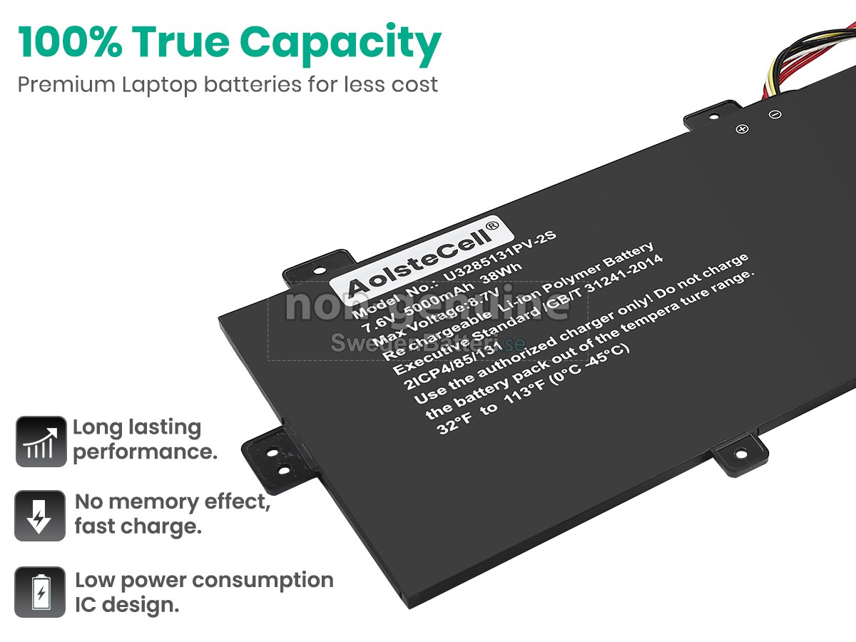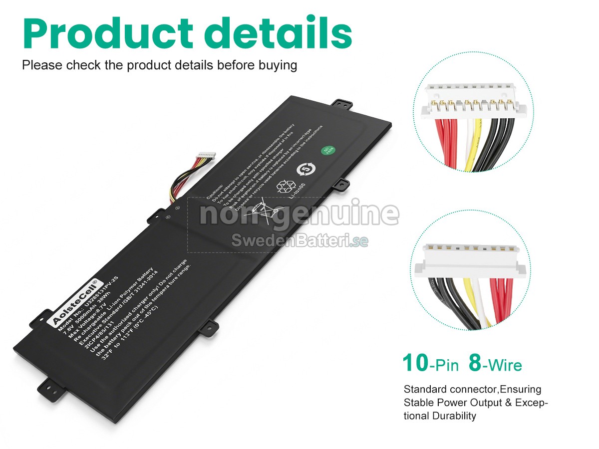 Det nya Jumper EZBOOK S5 14 INCH ersättningsbatteri för laptop i originalkvalitet är gjort av ett nyimporterat Grad A + batteri, TI-chip från Texas och ABS + PC miljöskyddssmaterialsom klarar höga temperaturer och är slitageskyddat, och som har genomgått mer än 100 säkerhetstester. Alla våra Jumper EZBOOK S5 14 INCH laptopersättningsbatterier är förenliga med CE, UL, ROHS, ISO9001/9002 certifieringsstandarder, dess design är i linje med OEM-specifikationer och 100% kompatibelt med originalspecifikationer. Prestandan är stabilare, väntetiden är längre, nya Jumper EZBOOK S5 14 INCH ersättningsbatteri av originalkvalitet passar olika omständigheter, så du kan använda din laptop närsomhelst, och slipper oroa dig över batteriet!
