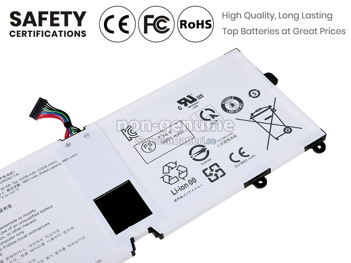 Det nya LG GRAM 17Z970-K.AA55A8 ersättningsbatteri för laptop i originalkvalitet är gjort av ett nyimporterat Grad A + batteri, TI-chip från Texas och ABS + PC miljöskyddssmaterialsom klarar höga temperaturer och är slitageskyddat, och som har genomgått mer än 100 säkerhetstester. Alla våra LG GRAM 17Z970-K.AA55A8 laptopersättningsbatterier är förenliga med CE, UL, ROHS, ISO9001/9002 certifieringsstandarder, dess design är i linje med OEM-specifikationer och 100% kompatibelt med originalspecifikationer. Prestandan är stabilare, väntetiden är längre, nya LG GRAM 17Z970-K.AA55A8 ersättningsbatteri av originalkvalitet passar olika omständigheter, så du kan använda din laptop närsomhelst, och slipper oroa dig över batteriet!