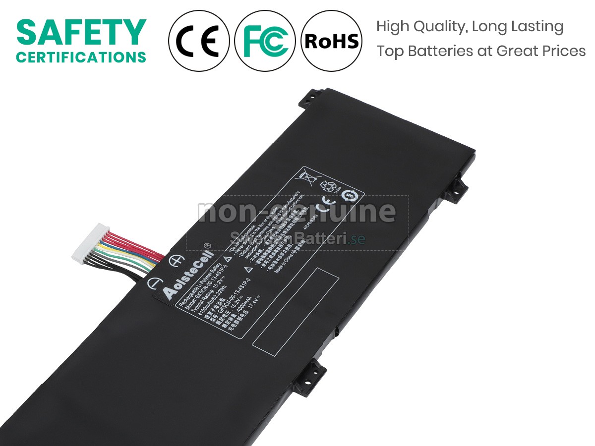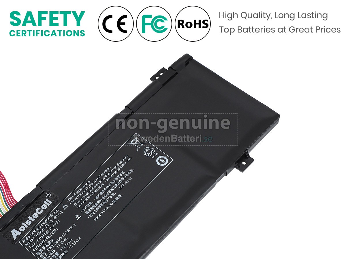 Det nya Mechrevo GK5CN5Z ersättningsbatteri för laptop i originalkvalitet är gjort av ett nyimporterat Grad A + batteri, TI-chip från Texas och ABS + PC miljöskyddssmaterialsom klarar höga temperaturer och är slitageskyddat, och som har genomgått mer än 100 säkerhetstester. Alla våra Mechrevo GK5CN5Z laptopersättningsbatterier är förenliga med CE, UL, ROHS, ISO9001/9002 certifieringsstandarder, dess design är i linje med OEM-specifikationer och 100% kompatibelt med originalspecifikationer. Prestandan är stabilare, väntetiden är längre, nya Mechrevo GK5CN5Z ersättningsbatteri av originalkvalitet passar olika omständigheter, så du kan använda din laptop närsomhelst, och slipper oroa dig över batteriet!