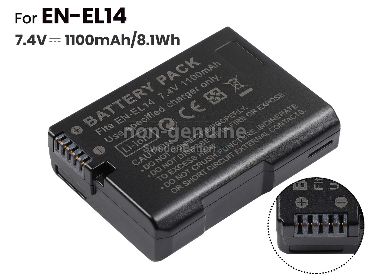 Om din enhet slutar fungera eller inte fungerar är det dags att byta ut batteri. Det nya Nikon EN-EL14A ersättningsbatteri i originalkvalitet är gjort av ett nyimporterat Grad A + batteri, TI-chip från Texas och ABS + PC miljöskyddssmaterialsom klarar höga temperaturer och är slitageskyddat, och som har genomgått mer än 100 säkerhetstester. Alla våra Nikon EN-EL14A ersättnings batterier är förenliga med CE, UL, ROHS, ISO9001/9002 certifieringsstandarder, dess design är i linje med OEM-specifikationer och 100% kompatibelt med originalspecifikationer. Prestandan är stabilare, väntetiden är längre, nya Nikon EN-EL14A ersättningsbatteri av originalkvalitet passar olika omständigheter, så du kan använda din utrustning närsomhelst, och slipper oroa dig över batteriet!