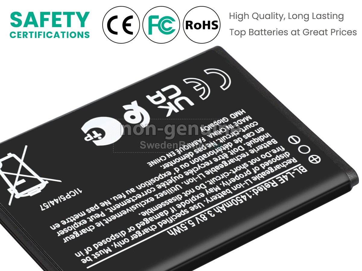 Om din enhet slutar fungera eller inte fungerar är det dags att byta ut batteri. Det nya Nokia 8210 4G ersättningsbatteri i originalkvalitet är gjort av ett nyimporterat Grad A + batteri, TI-chip från Texas och ABS + PC miljöskyddssmaterialsom klarar höga temperaturer och är slitageskyddat, och som har genomgått mer än 100 säkerhetstester. Alla våra Nokia 8210 4G ersättnings batterier är förenliga med CE, UL, ROHS, ISO9001/9002 certifieringsstandarder, dess design är i linje med OEM-specifikationer och 100% kompatibelt med originalspecifikationer. Prestandan är stabilare, väntetiden är längre, nya Nokia 8210 4G ersättningsbatteri av originalkvalitet passar olika omständigheter, så du kan använda din utrustning närsomhelst, och slipper oroa dig över batteriet!