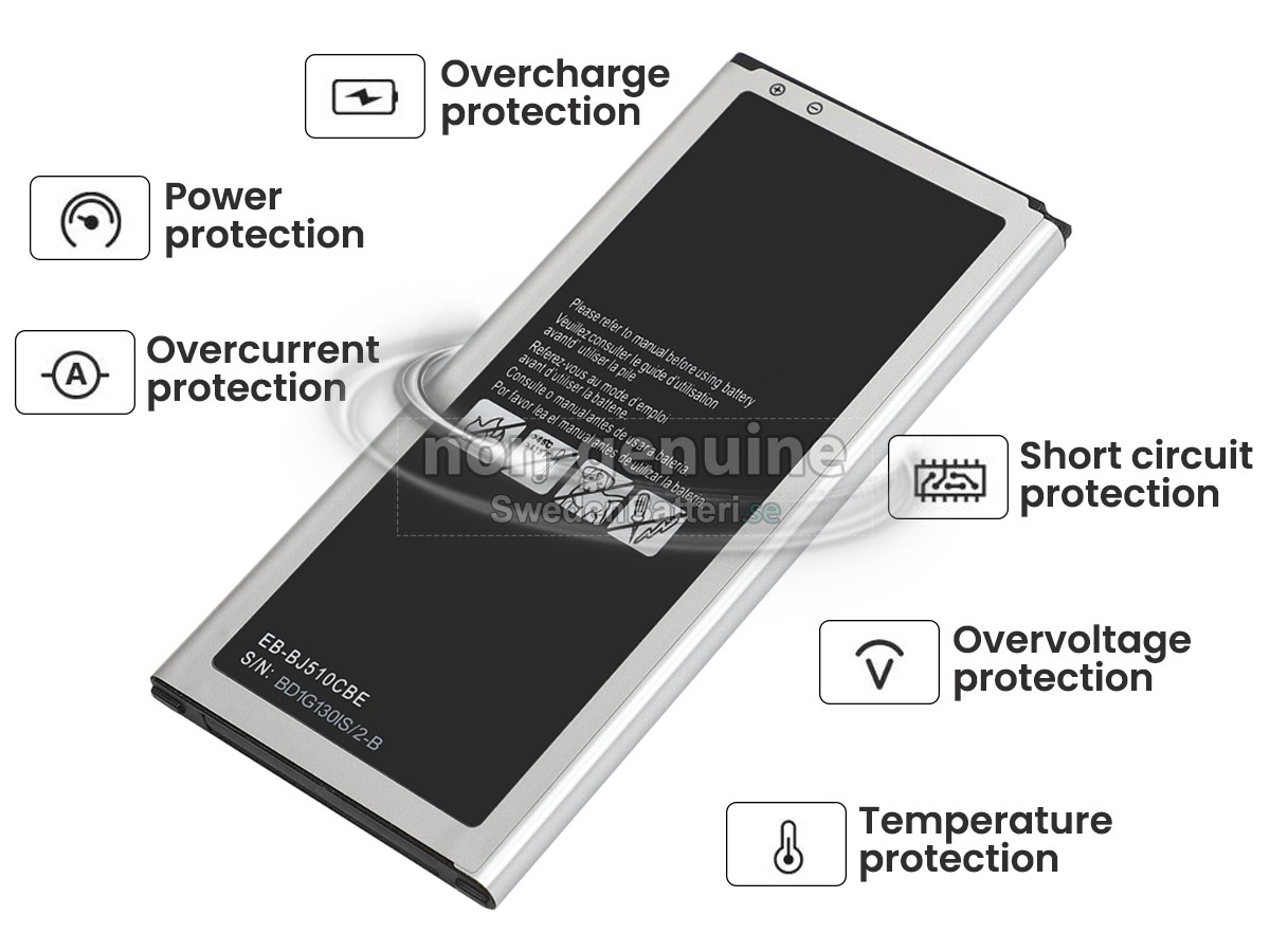 Om din enhet slutar fungera eller inte fungerar är det dags att byta ut batteri. Det nya Samsung J510H ersättningsbatteri i originalkvalitet är gjort av ett nyimporterat Grad A + batteri, TI-chip från Texas och ABS + PC miljöskyddssmaterialsom klarar höga temperaturer och är slitageskyddat, och som har genomgått mer än 100 säkerhetstester. Alla våra Samsung J510H ersättnings batterier är förenliga med CE, UL, ROHS, ISO9001/9002 certifieringsstandarder, dess design är i linje med OEM-specifikationer och 100% kompatibelt med originalspecifikationer. Prestandan är stabilare, väntetiden är längre, nya Samsung J510H ersättningsbatteri av originalkvalitet passar olika omständigheter, så du kan använda din utrustning närsomhelst, och slipper oroa dig över batteriet!