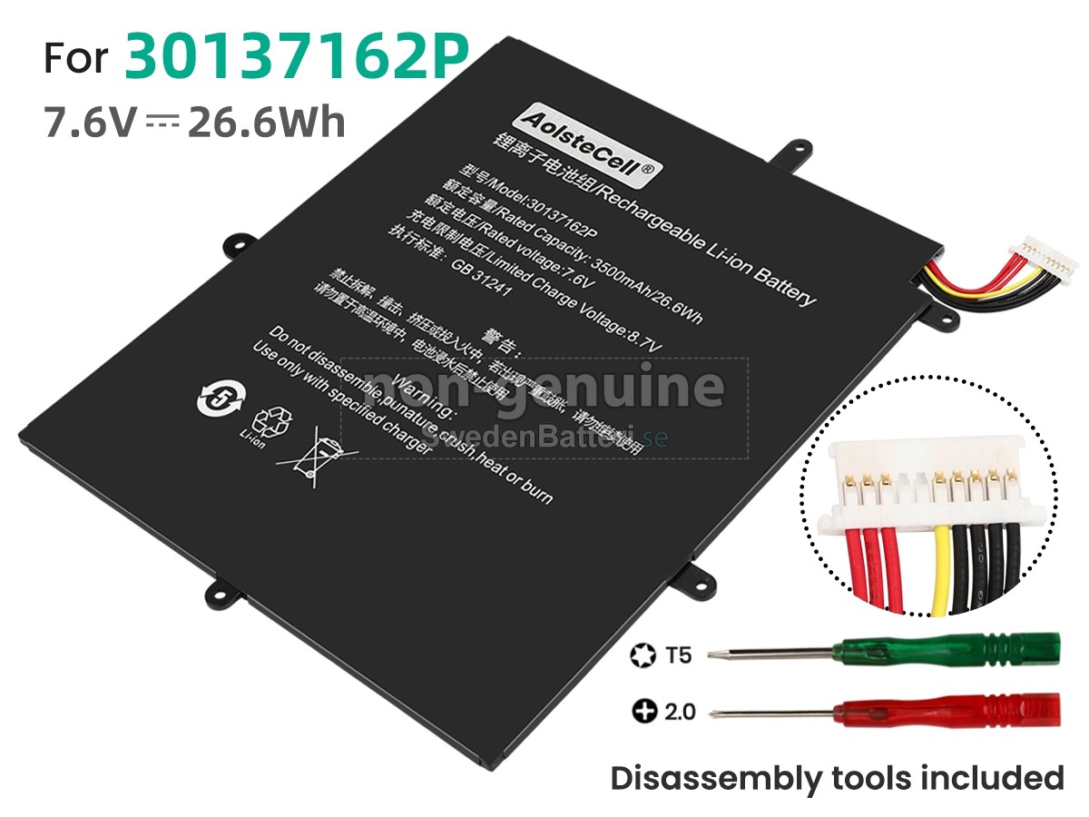 Som en professionellt batteriföretag i Sverige, är vi hängivna till att erbjuda dig högkalitativa laptopbatterier, är strikta mot oss själva, tar större ansvar för dig, och har en riktig "kärna" som berör dig. Vi säljer inte bara batterier, utan även tjänster och tillit! Vi erbjuder en ettårig fri ersättning och 30-dagars pengarna tillbaka-garanti. Splitternya Teclast 30137162P -batteriet av originalkvalitet och bra "kärn"-quality, dubbel försäkran.