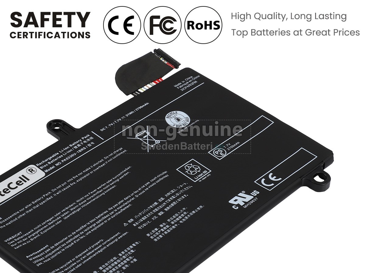 Det nya Toshiba Dynabook G83 ersättningsbatteri för laptop i originalkvalitet är gjort av ett nyimporterat Grad A + batteri, TI-chip från Texas och ABS + PC miljöskyddssmaterialsom klarar höga temperaturer och är slitageskyddat, och som har genomgått mer än 100 säkerhetstester. Alla våra Toshiba Dynabook G83 laptopersättningsbatterier är förenliga med CE, UL, ROHS, ISO9001/9002 certifieringsstandarder, dess design är i linje med OEM-specifikationer och 100% kompatibelt med originalspecifikationer. Prestandan är stabilare, väntetiden är längre, nya Toshiba Dynabook G83 ersättningsbatteri av originalkvalitet passar olika omständigheter, så du kan använda din laptop närsomhelst, och slipper oroa dig över batteriet!