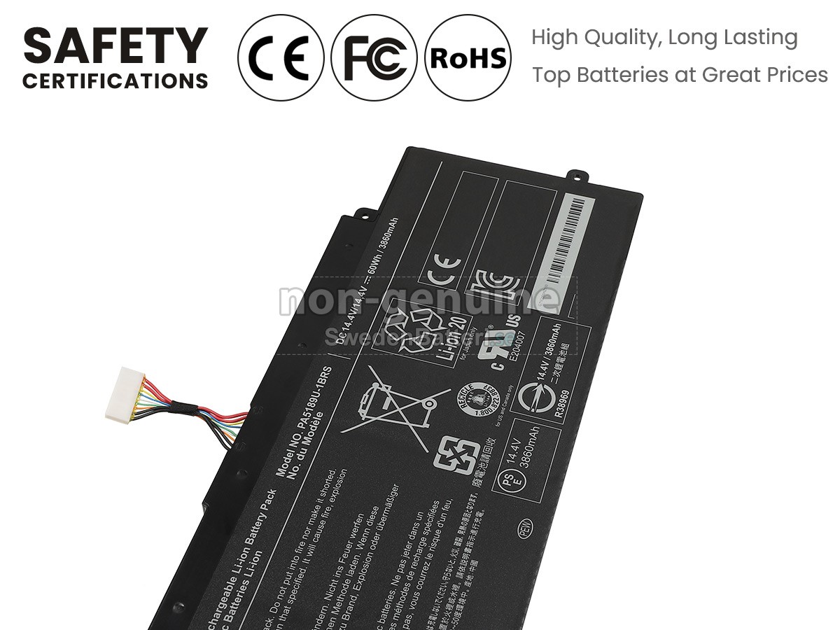 Det nya Toshiba Satellite P55W-B5380SM ersättningsbatteri för laptop i originalkvalitet är gjort av ett nyimporterat Grad A + batteri, TI-chip från Texas och ABS + PC miljöskyddssmaterialsom klarar höga temperaturer och är slitageskyddat, och som har genomgått mer än 100 säkerhetstester. Alla våra Toshiba Satellite P55W-B5380SM laptopersättningsbatterier är förenliga med CE, UL, ROHS, ISO9001/9002 certifieringsstandarder, dess design är i linje med OEM-specifikationer och 100% kompatibelt med originalspecifikationer. Prestandan är stabilare, väntetiden är längre, nya Toshiba Satellite P55W-B5380SM ersättningsbatteri av originalkvalitet passar olika omständigheter, så du kan använda din laptop närsomhelst, och slipper oroa dig över batteriet!